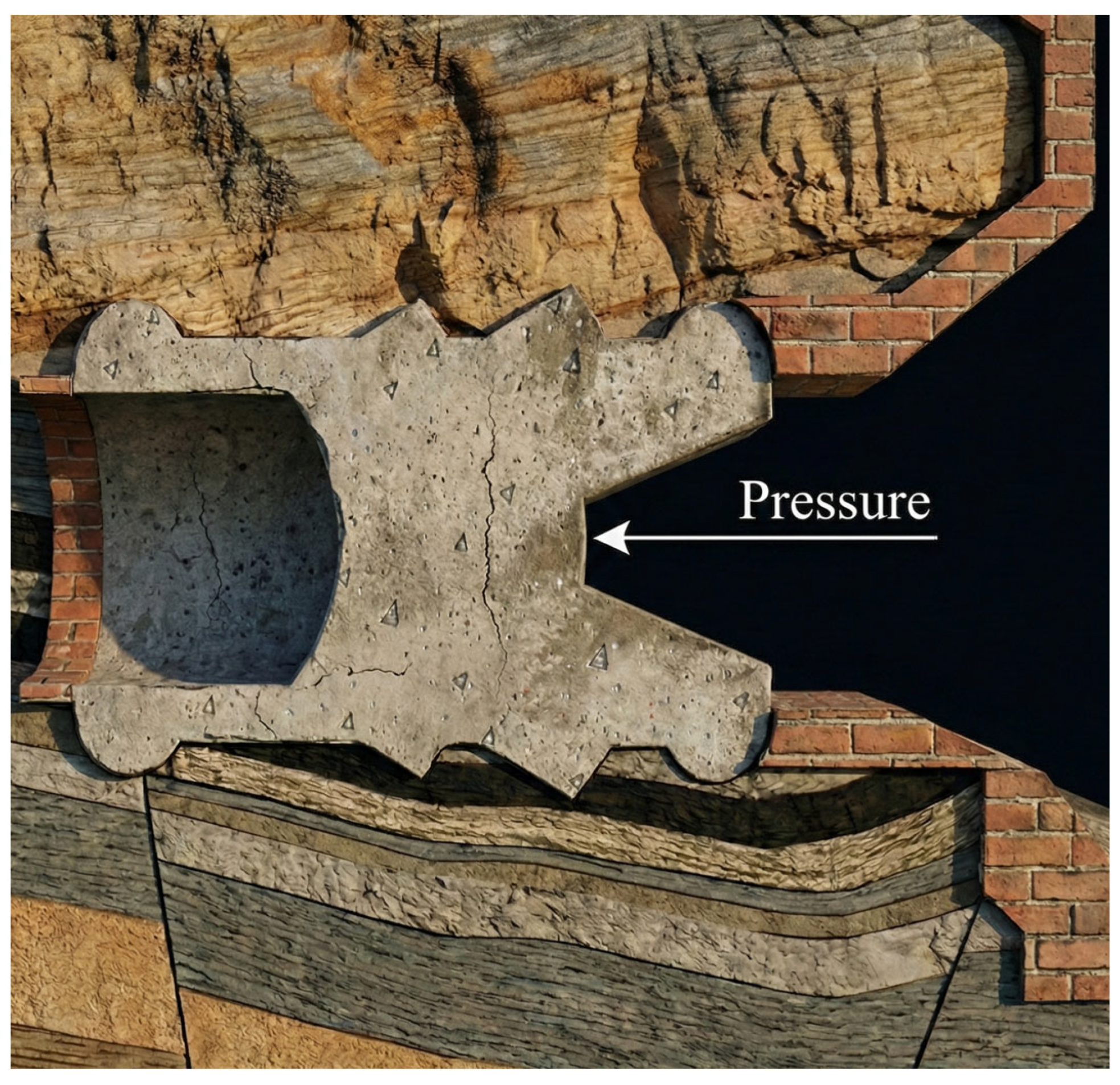 2.3.2. Suffosion Phenomenon and Rock-Lining Contact Quality