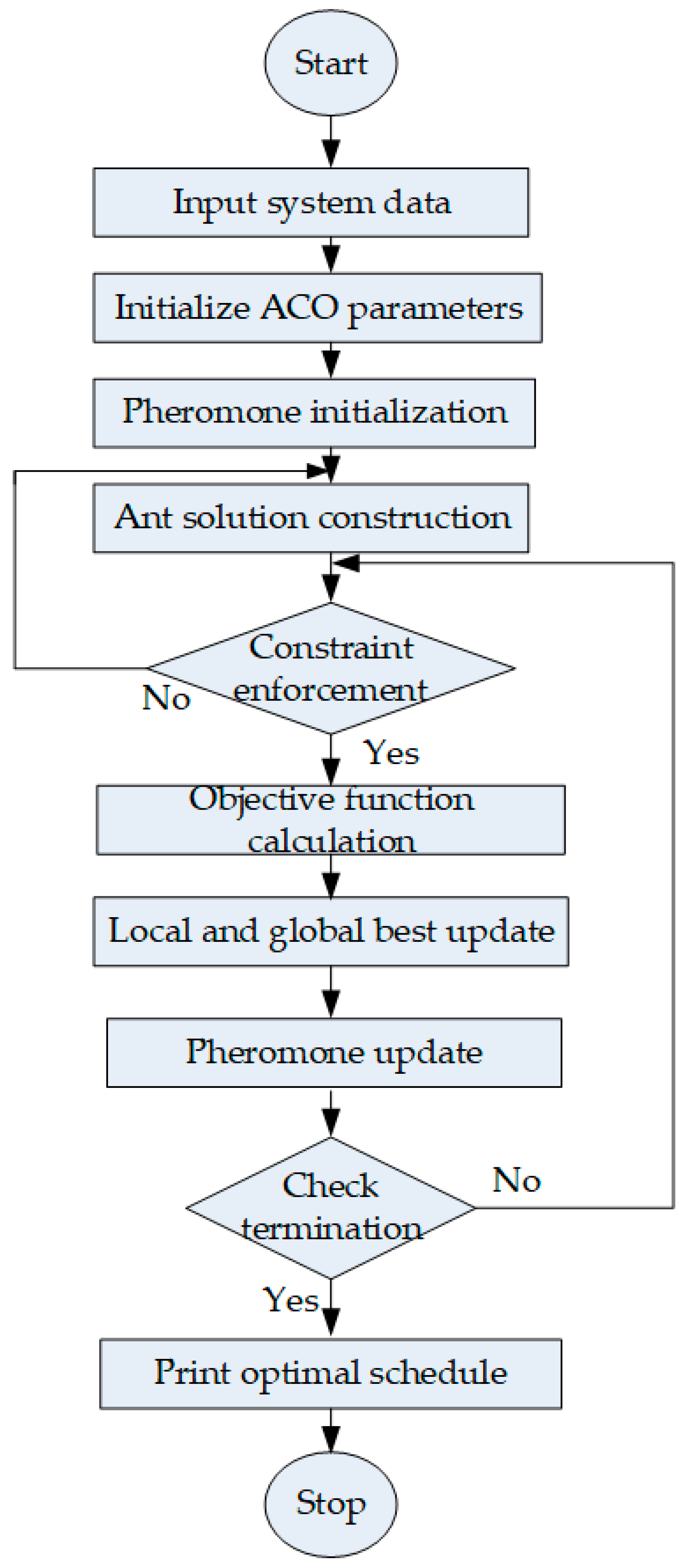 - Application of an ACO-based dispatch strategy for coordination of PVs, WTs, BSSs and utility grids to reduce energy purchased from the grid and improve energy sales;