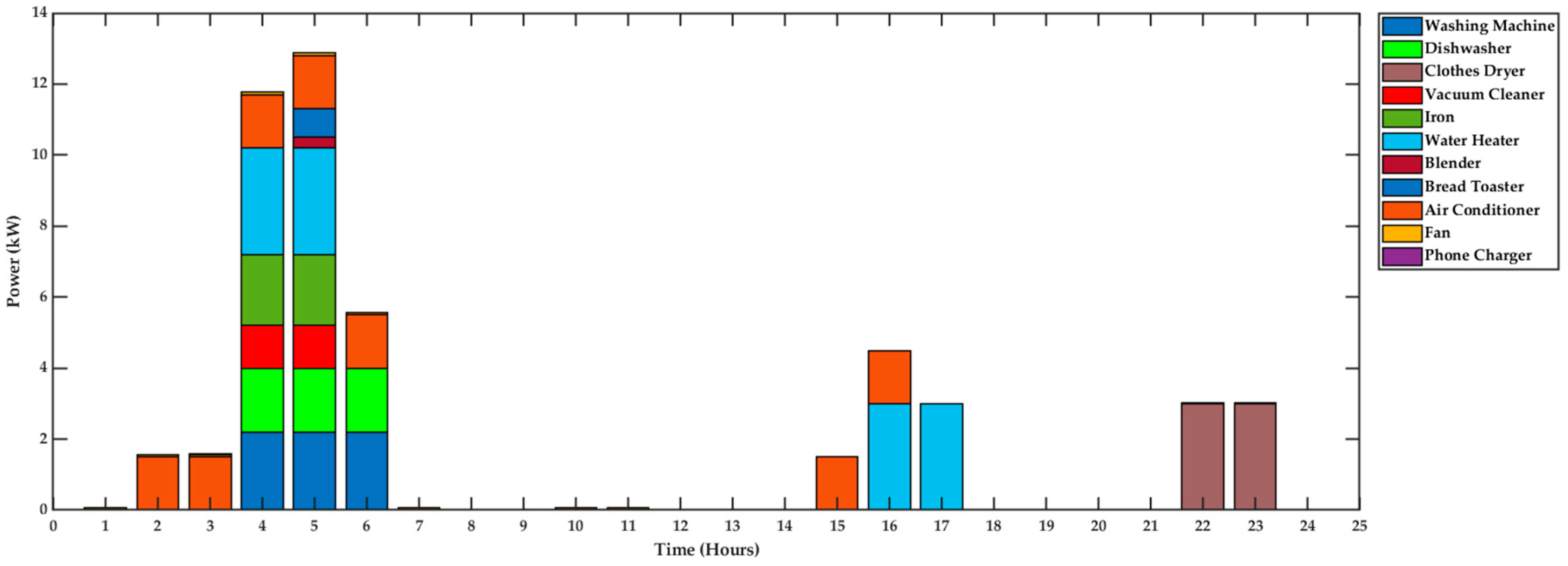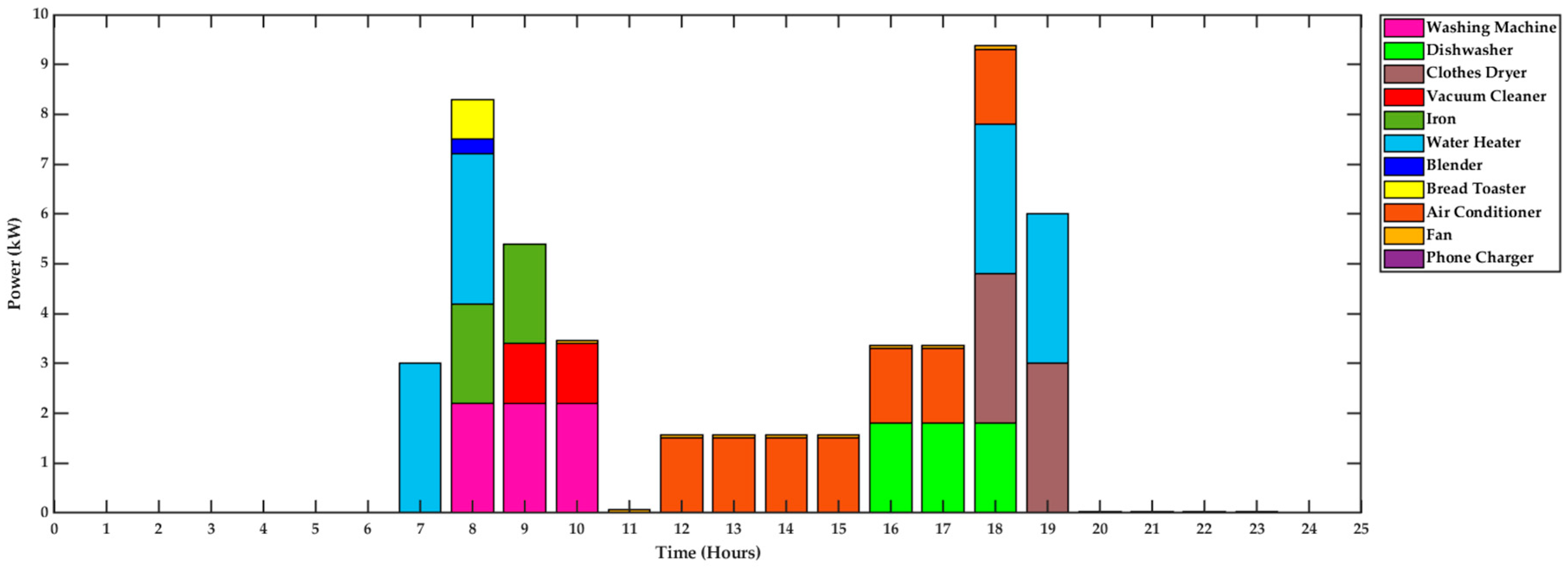| Appliance | Rated Power (kW) | Shiftable | Operating Hours (h/Day) |