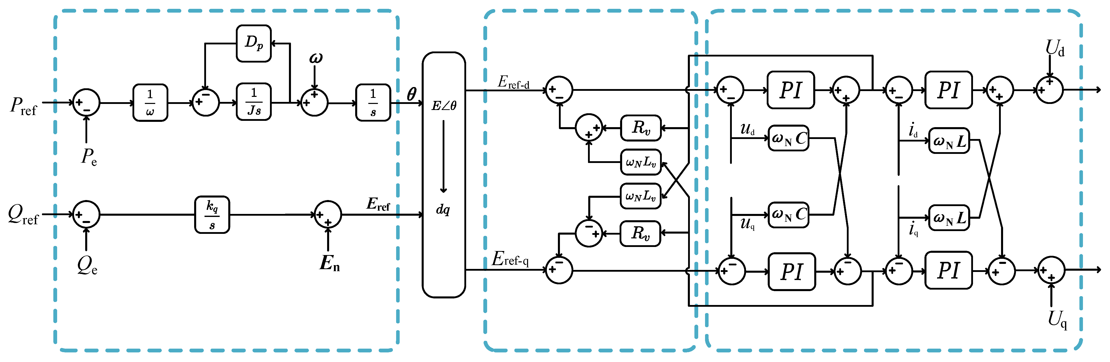 - Qin, S.; Qi, C.; Li, S.; Zhang, X.; Wang, R.; Dai, L. Review of the voltage source grid forming wind turbine. Proc. CSEE 2023, 43, 1314–1334. [Google Scholar]
