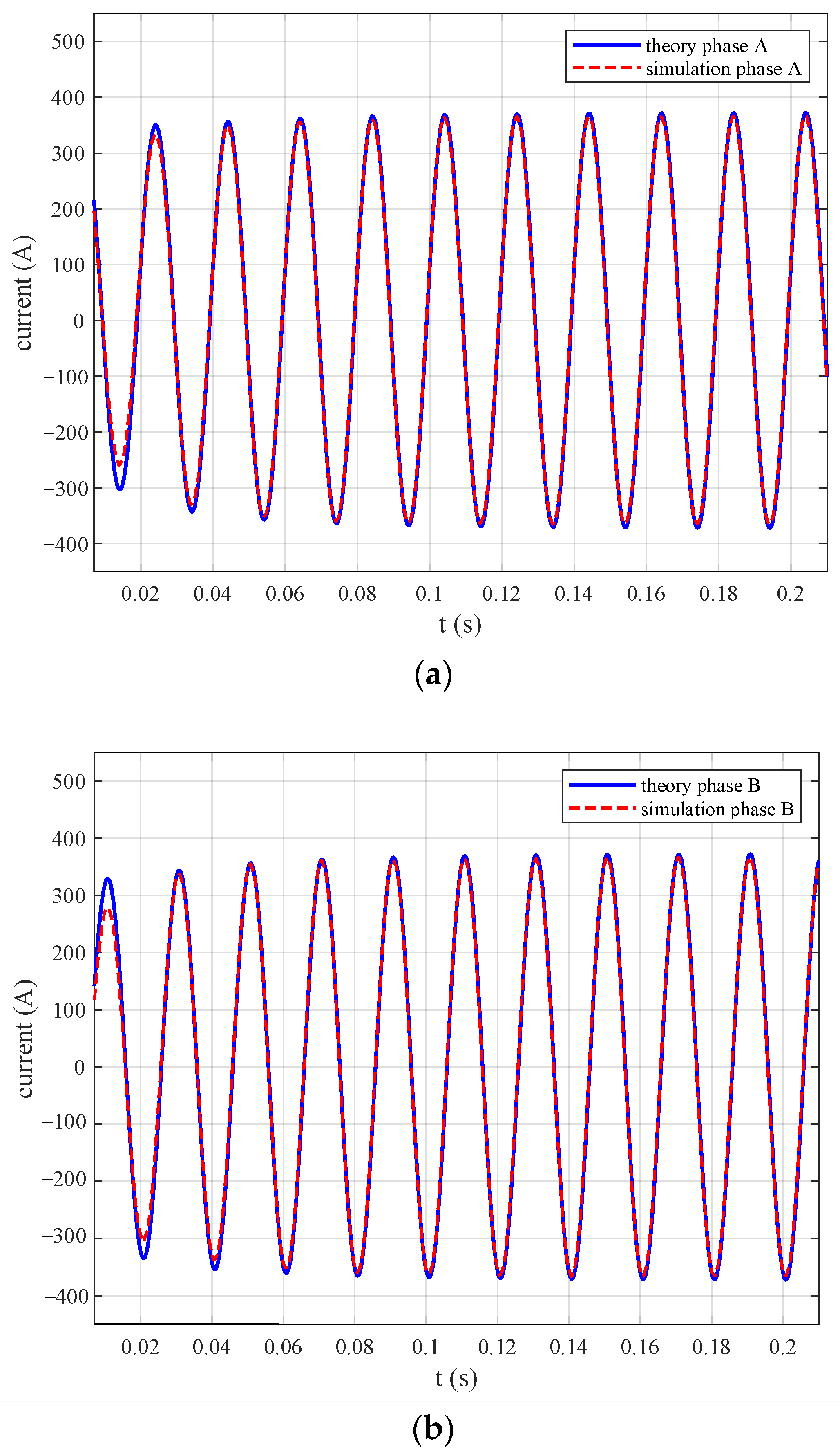 - Jia, K.; Hou, L.; Liu, Q.; Fang, Y.; Zheng, L.; Bi, T. Analytical calculation of transient current from an inverter interfaced renewable energy. IEEE Trans. Power Syst. 2022, 37, 1554–1563. [Google Scholar] [CrossRef]