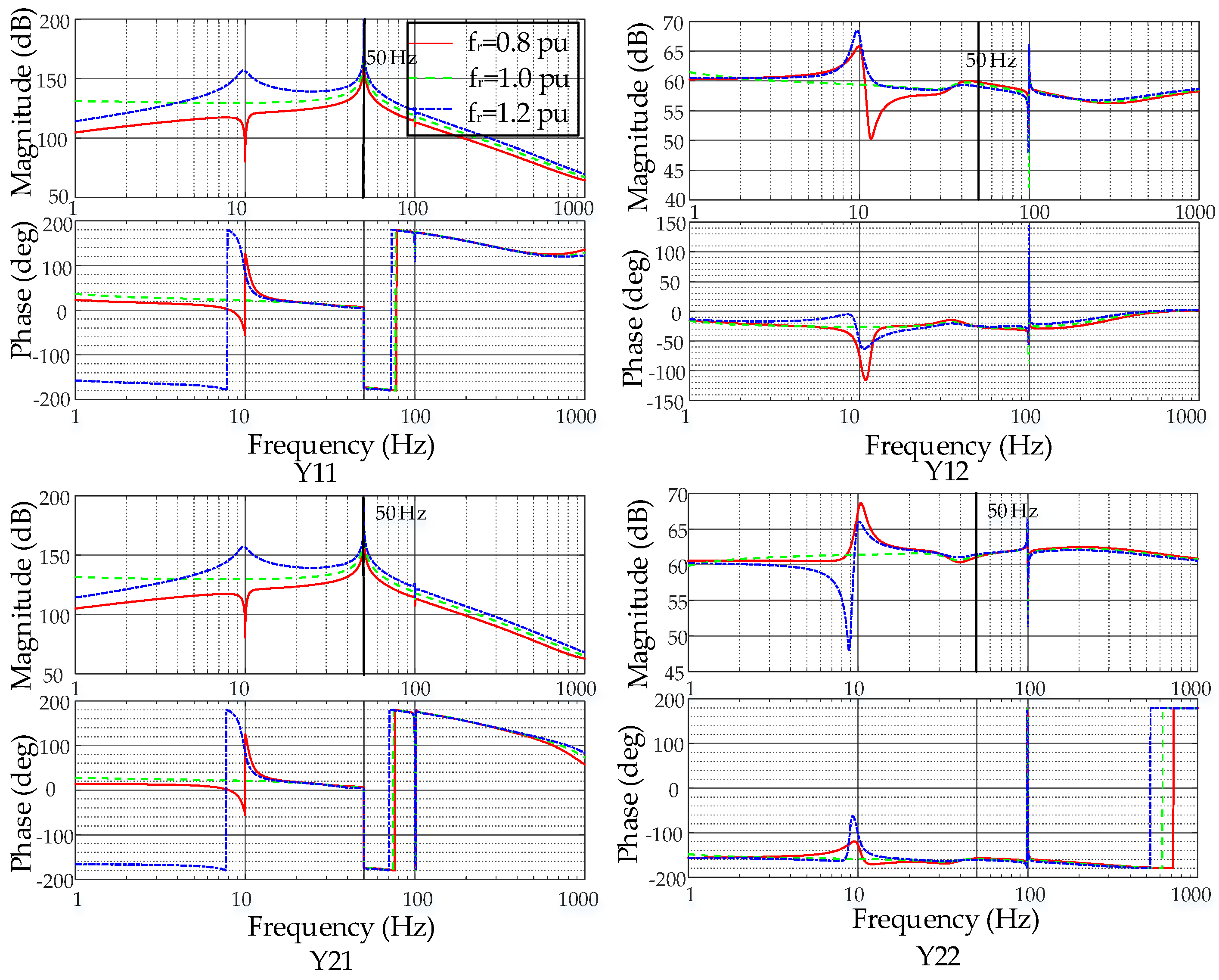 - Nian, H.; Hu, B.; Wu, C.; Chen, L.; Blaabjerg, F. Analysis and Reshaping on Impedance Characteristic of DFIG System Based on Symmetrical PLL. IEEE Trans. Power Electron. 2020, 35, 11760–11772. [Google Scholar] [CrossRef]