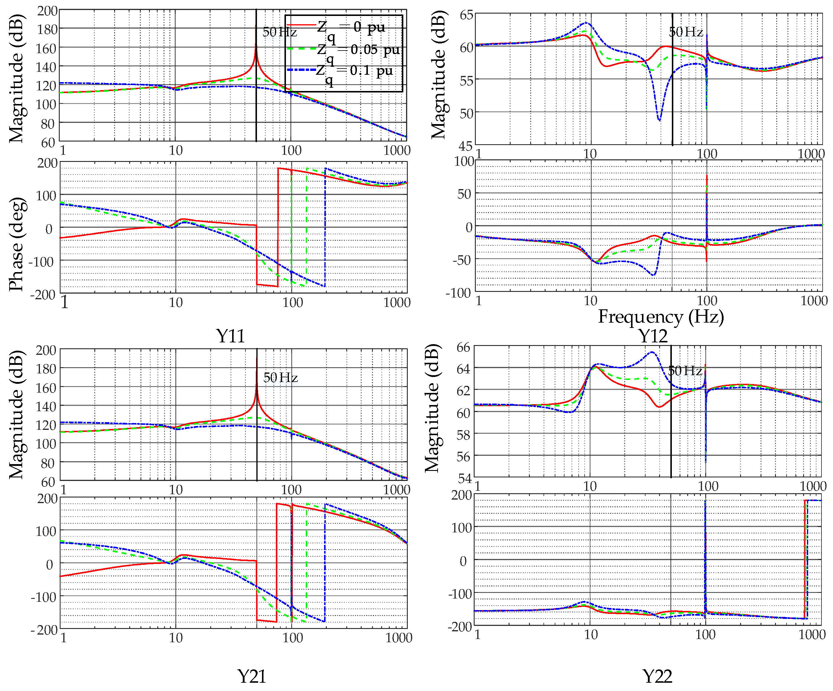 - Sun, J. Impedance-Based Stability Criterion for Grid-Connected Inverters. IEEE Trans. Power Electron. 2011, 26, 3075–3078. [Google Scholar] [CrossRef]