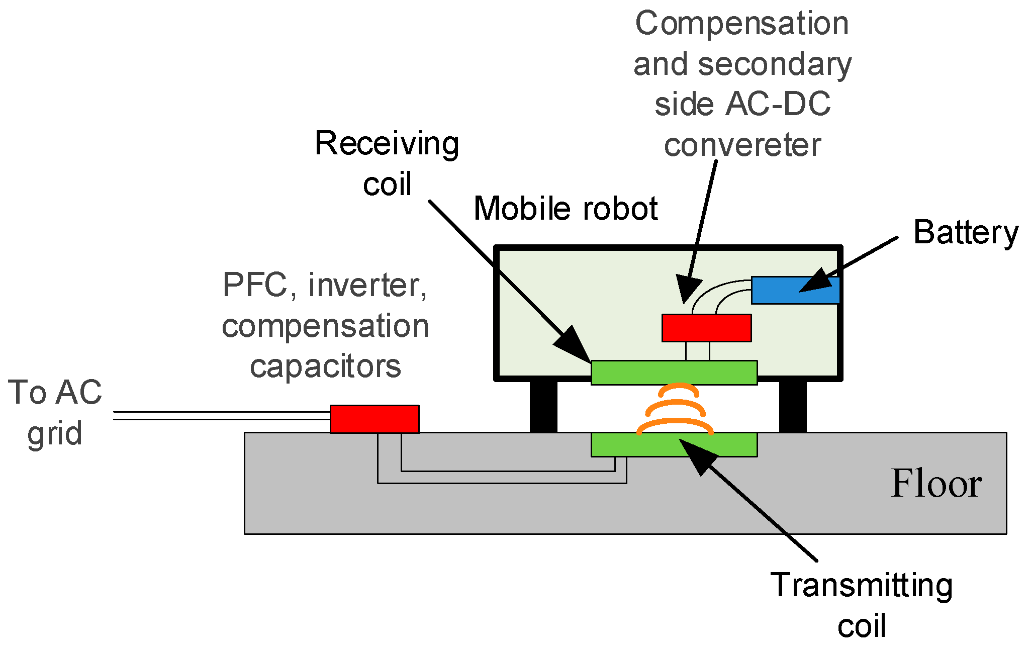 There are various types of wireless power transfer. Considering the power levels of mobile robots and the distances between a mobile robot and the wireless charging platform, resonant-inductive wireless charging is the most suitable approach [