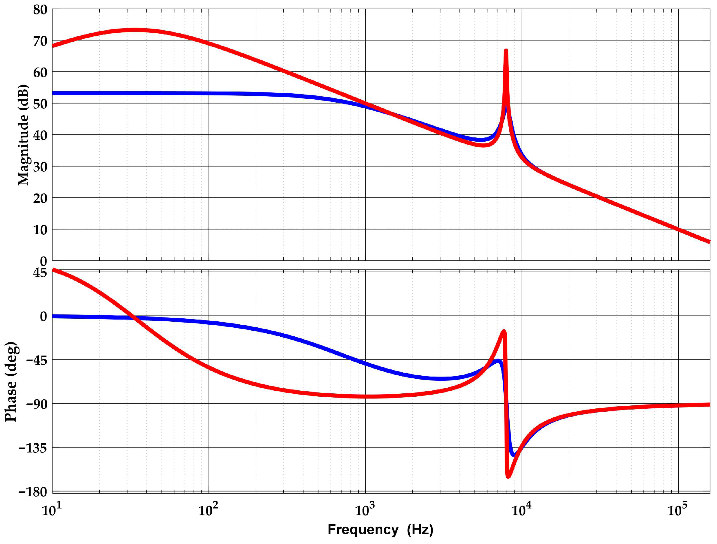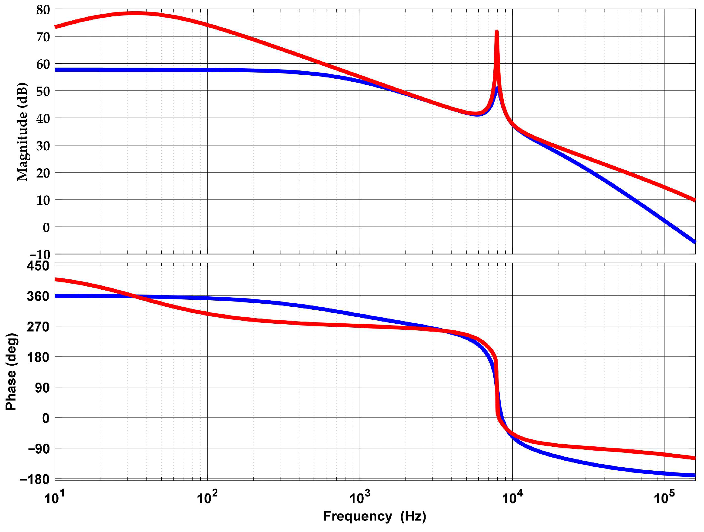 The comparative Bode diagram of the transfer function between the electrolyzer voltage and duty ratio is shown in