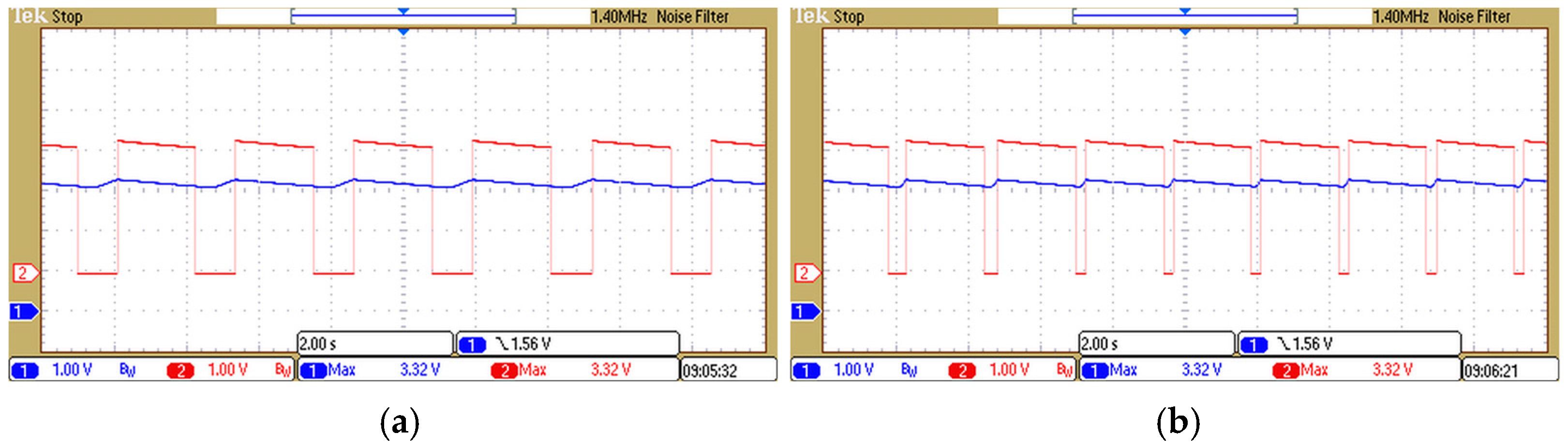 VOUT value of 3.25 V was close to the 3.3 V standard supply voltage accepted by many modern electronic microchips, while its peak-to-peak fluctuations shown in
