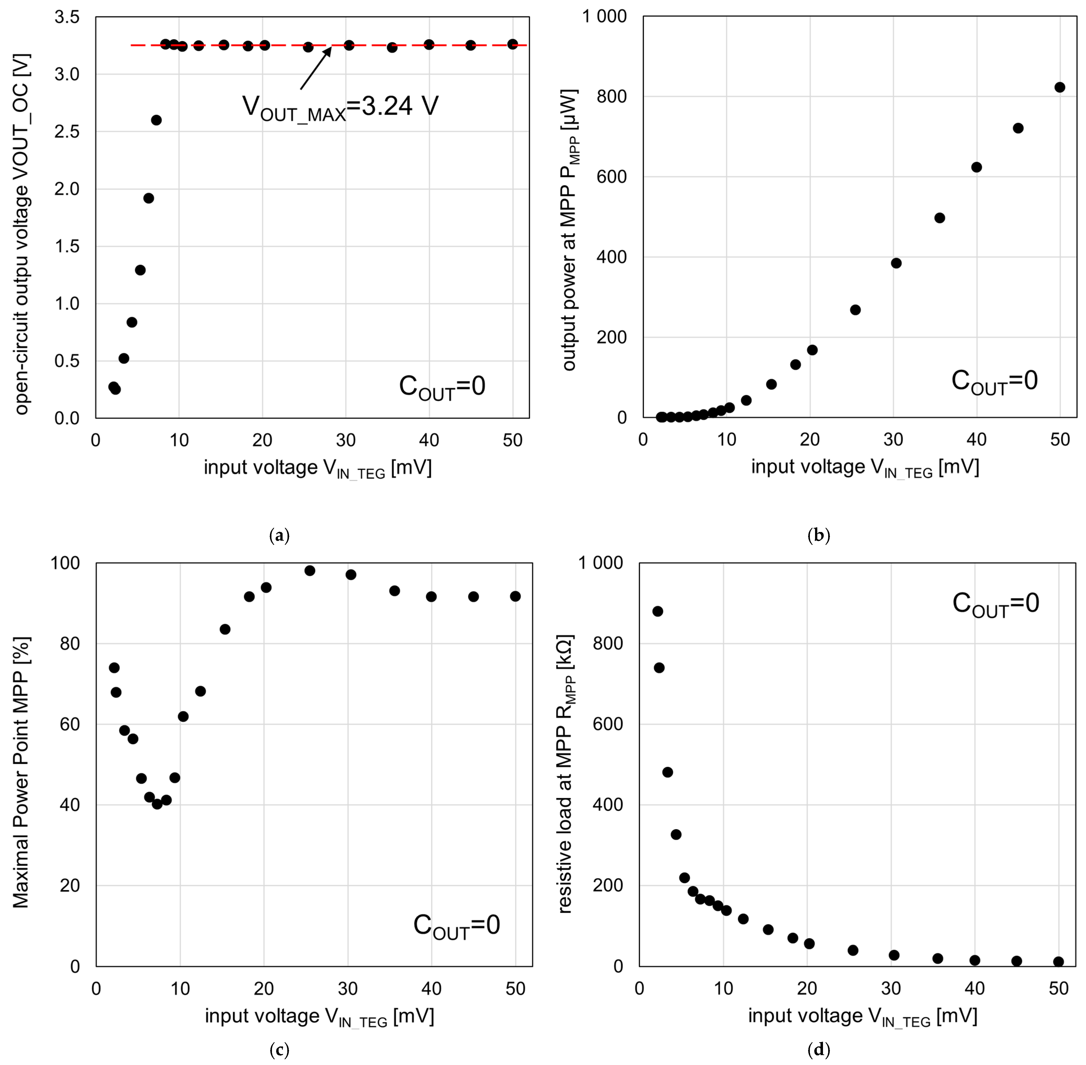 VIN_TEG < 8.4 mV, it is less than 11 μW. The MPP value (expressed as the percentage of