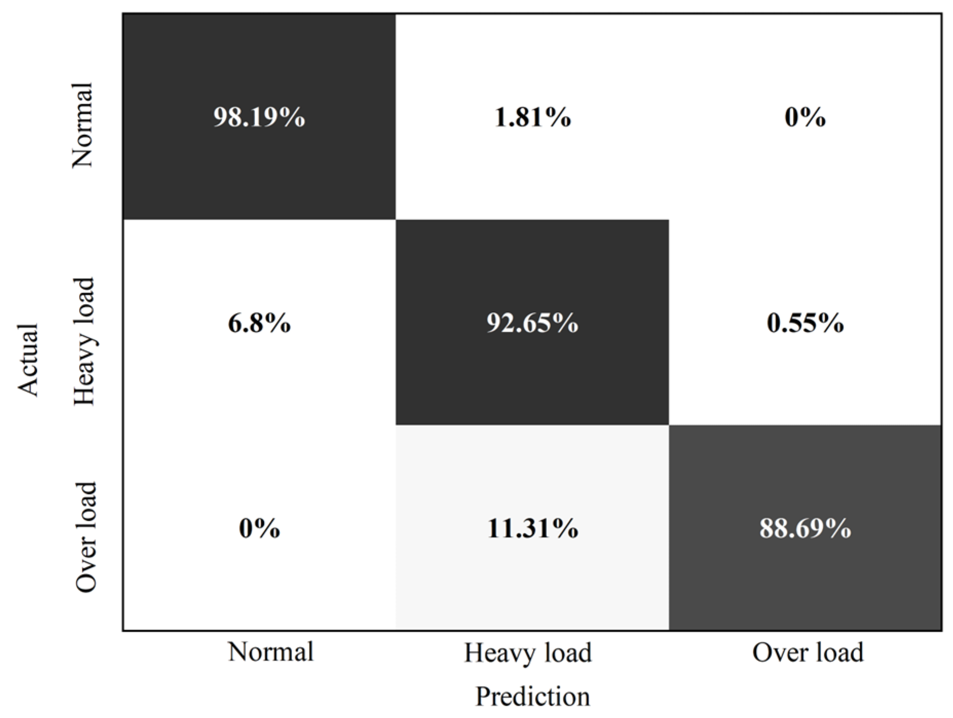 Based on the defined heavy overload states, this study builds a confusion matrix, as shown in