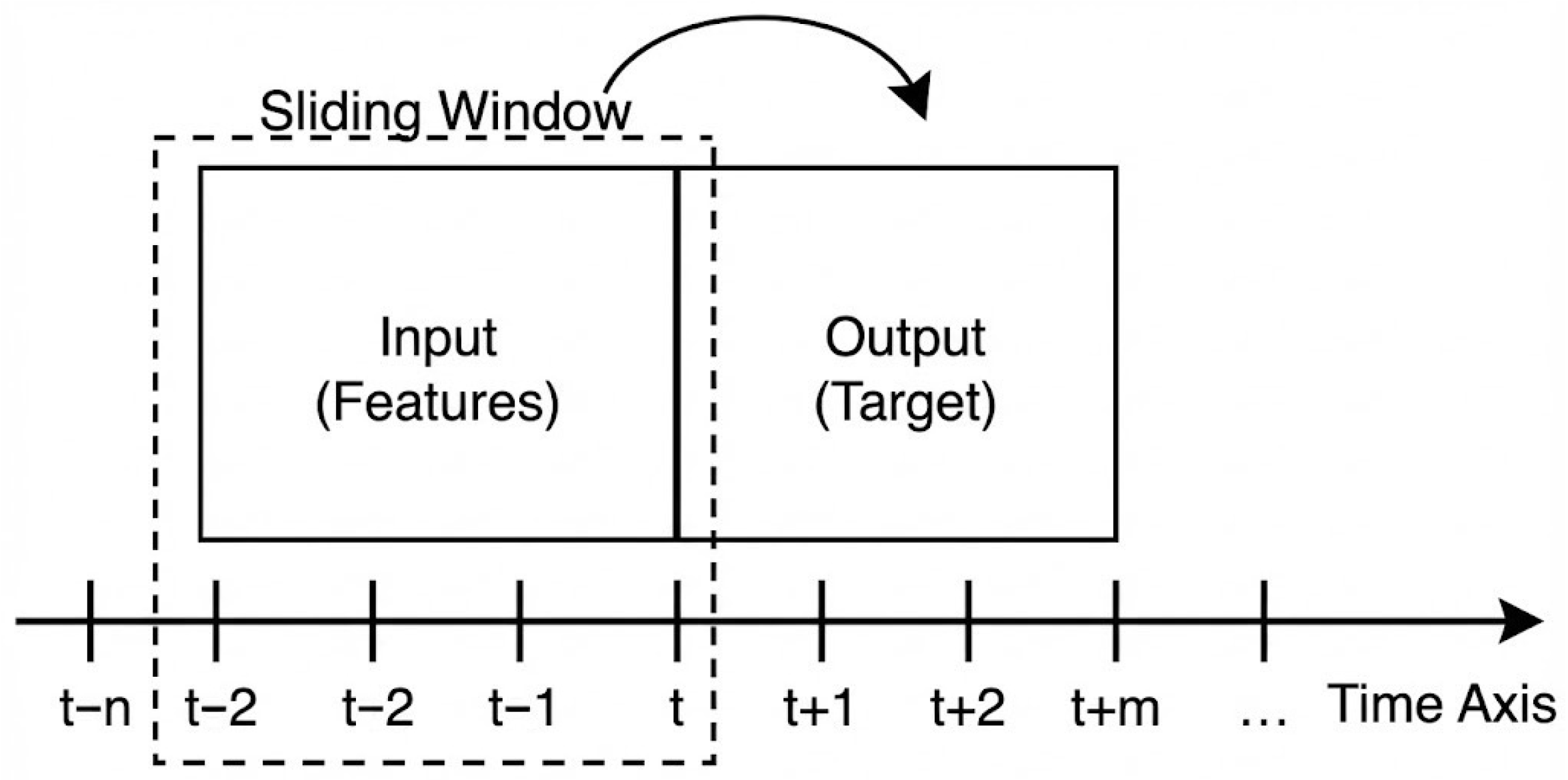 (2) Sliding Window Construction: To transform the continuous time-series forecasting problem into a supervised learning task, a sliding window strategy is implemented. As shown in