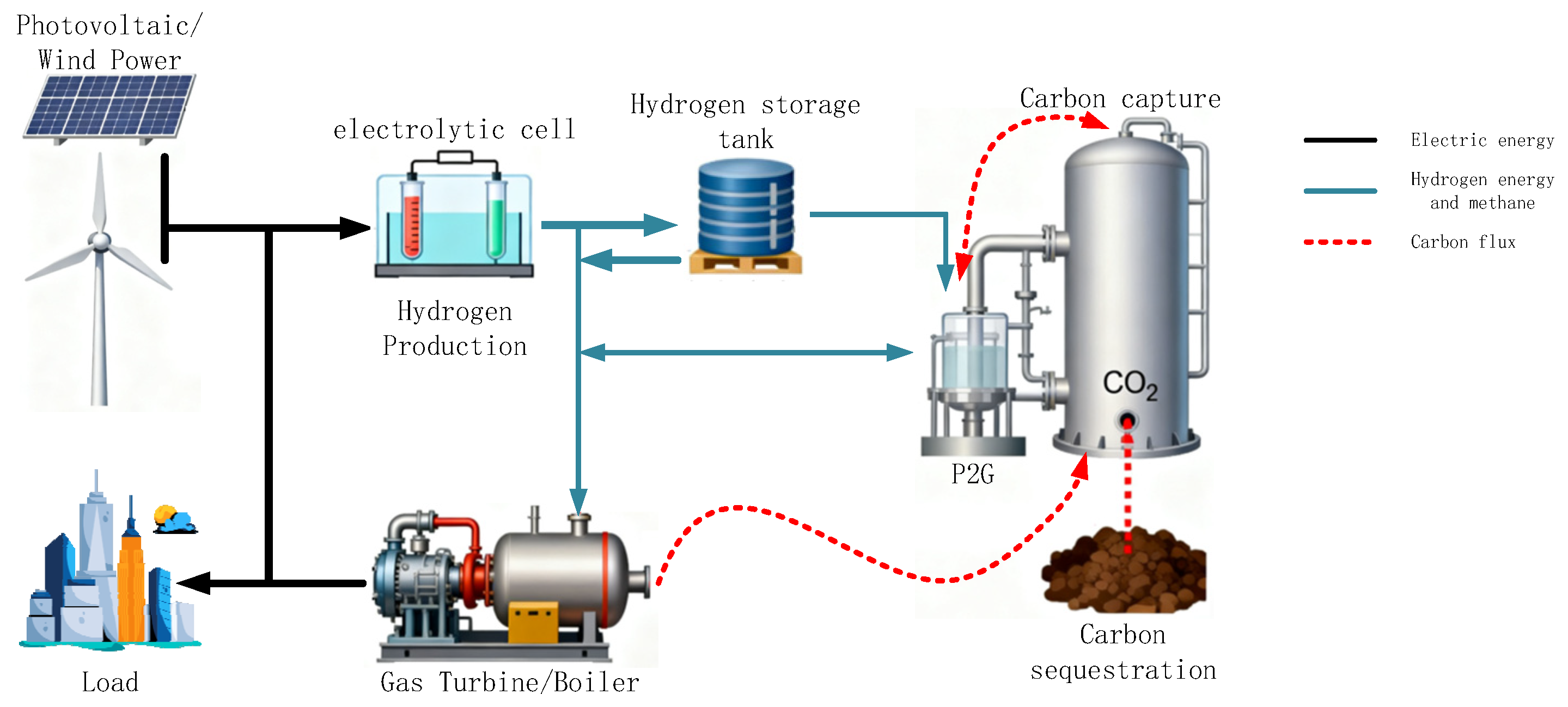 - Lu, M.; Teng, Y.; Chen, Z.; Song, Y. A bi-level optimization strategy of electricity-hydrogen-carbon integrated energy system considering photovoltaic and wind power uncertainty and demand response. Sci. Rep. 2025, 15, 18. [Google Scholar] [CrossRef] [PubMed]