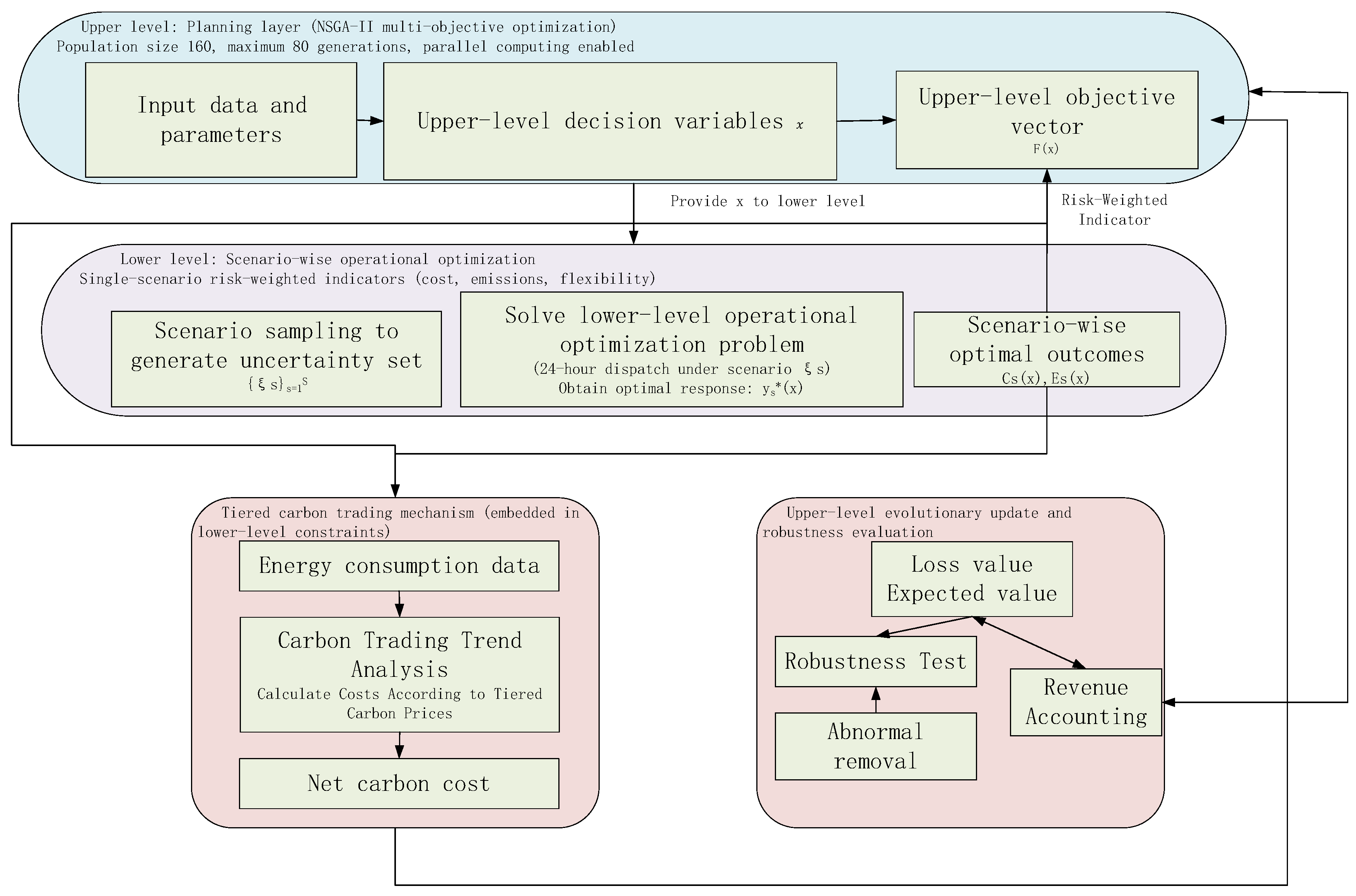 - Comprehensive stochastic bilevel optimization frameworks that jointly integrate dynamic risk modeling, stepped carbon trading, and multi-energy coupling remain limited.
