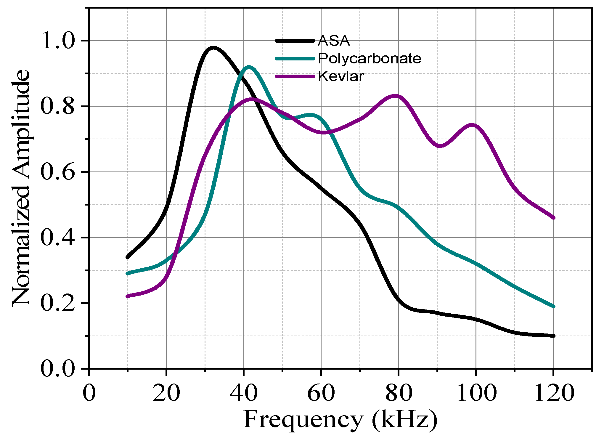 Figure 4, indicate that PA-Kevlar provides superior performance, having balanced sensitivity bandwidth-based dynamics. Owing to its higher specific stiffness compared to PC and ASA, with an effective Young’s modulus of approximately 6–10 GPa and a low density of 1.3–1.4 g cm