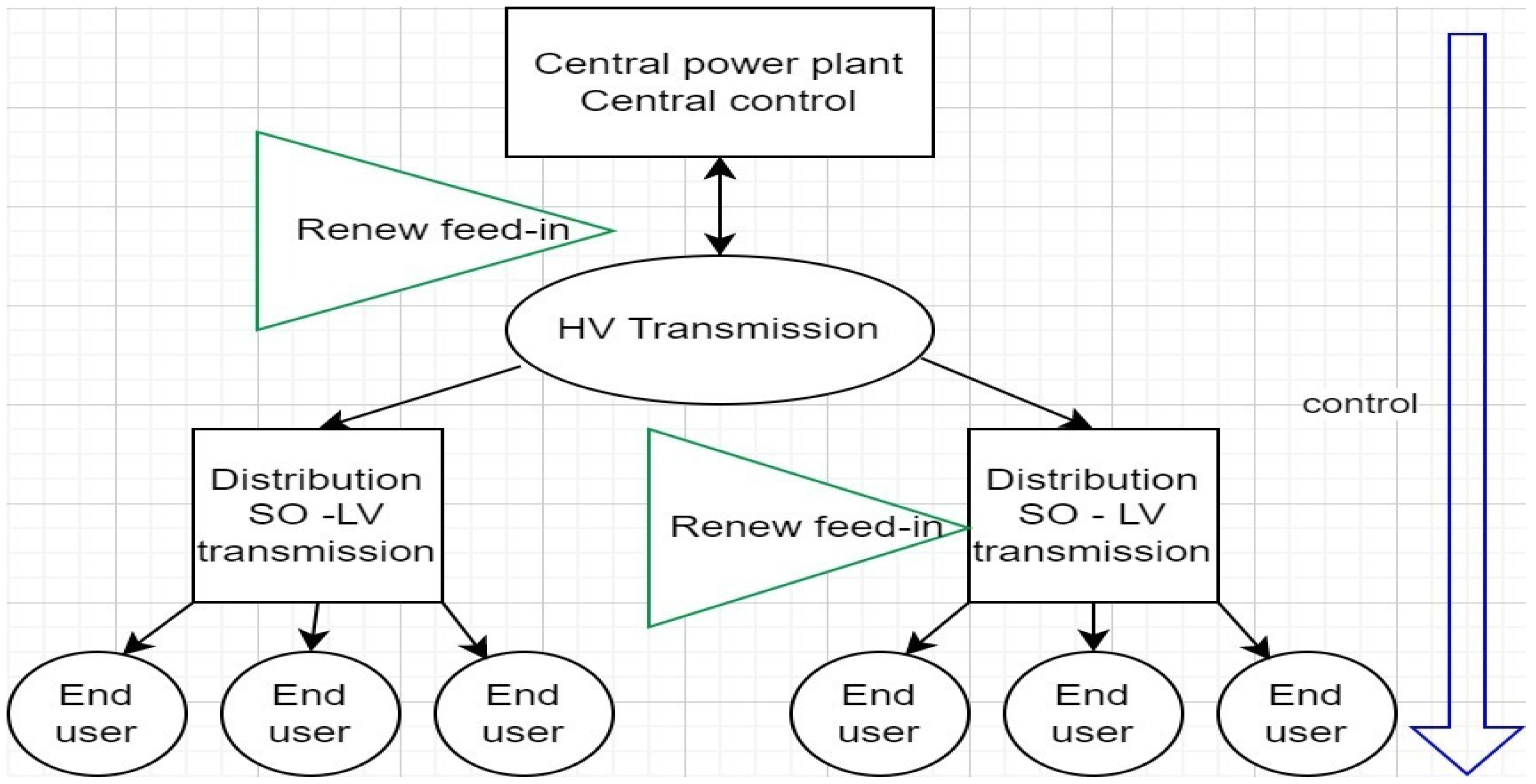 | Distributed Accounting EMS Figure 2a; GS Figure 2b | P2P flows of delivery; Accounting available capacities (incl. investments); Tokens, possible blockchain | Contracts; Tariffs; Metering; Financial S in Figure 2b |