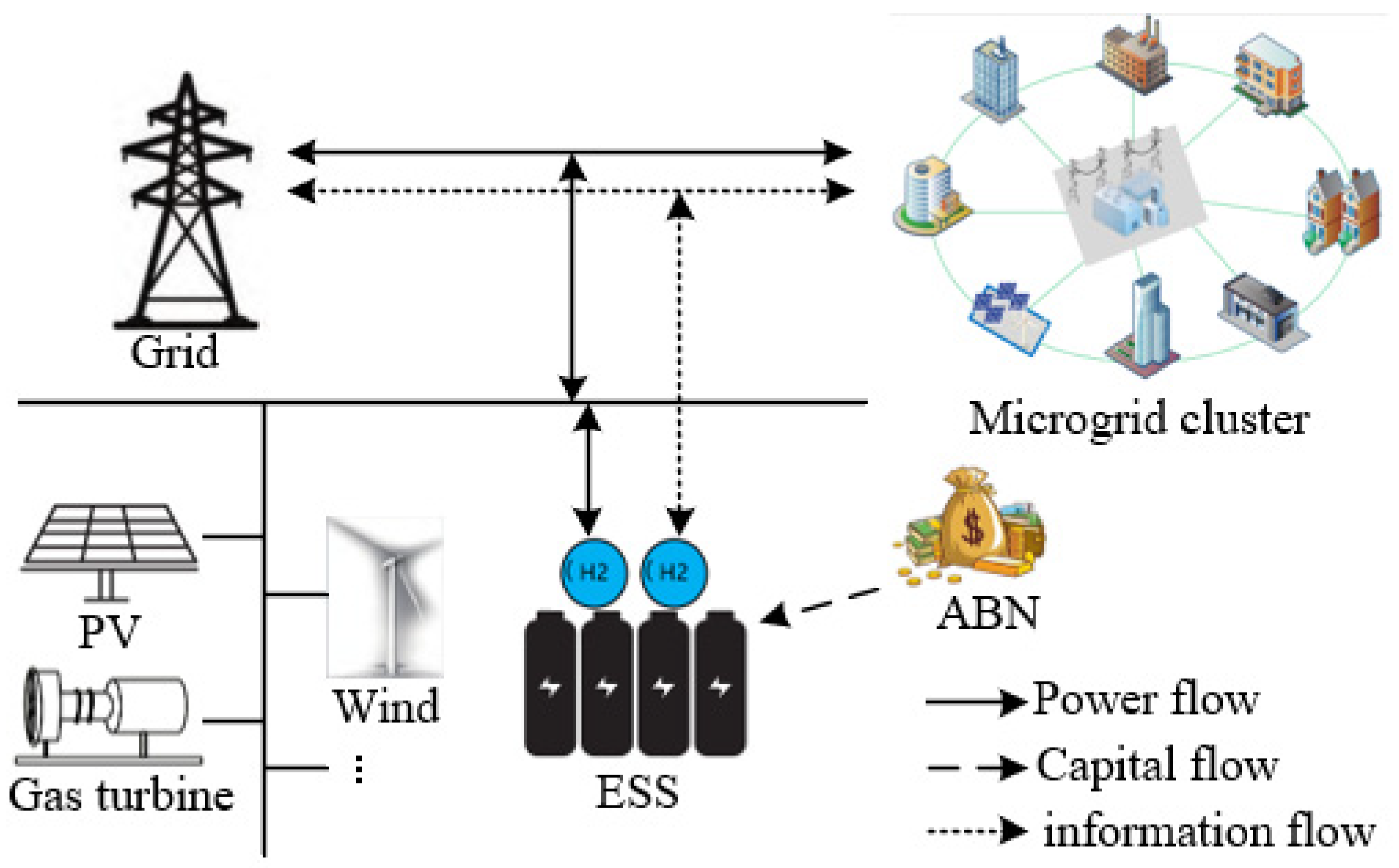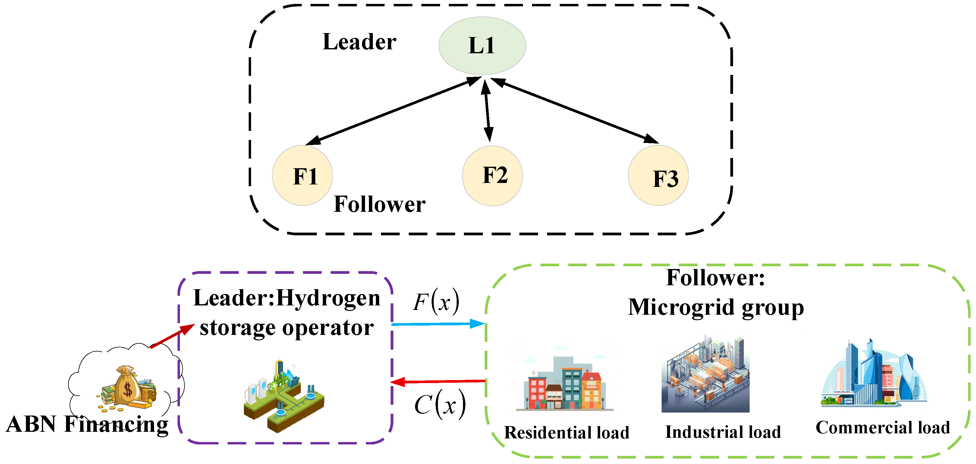- Integrated Energy Systems and Hydrogen Trading. With growing attention on electricity-hydrogen coupling, research has begun applying Stackelberg games to systems integrating hydrogen energy. For instance, one study developed Stackelberg game-based optimised bidding and management strategies for regional electricity–hydrogen integrated systems, where electricity–hydrogen operators serve as leaders [8]. Another research proposed a multi-objective robust dynamic pricing and operational strategy optimisation method based on Stackelberg games for integrated energy systems incorporating hydrogen energy storage (HES) [9].