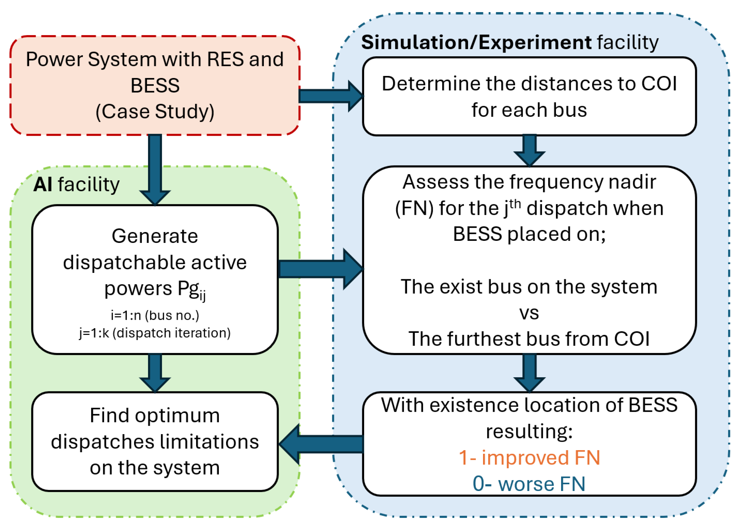 Unlike conventional approaches that focus primarily on static BESS placement, the proposed framework adopts a dynamic operational perspective. By combining COI proximity analysis with AI-driven dispatch optimization, the method enables adaptive decision-making that enhances frequency stability under varying operating conditions.