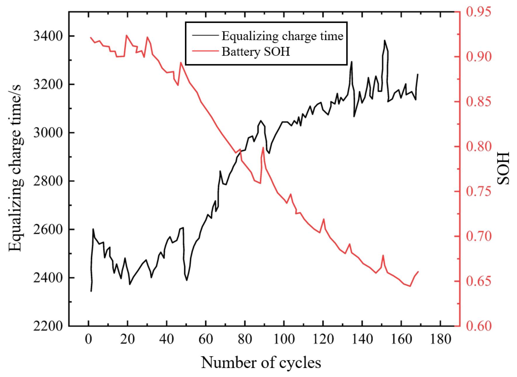 - During the analysis of system characteristics, a set of benchmark data is usually required as the basis for comparison. In this study, the health status (SOH) of lithium-ion batteries is selected as the key parameter for performance evaluation, and the standard value under new conditions is set as the benchmark sequence. This benchmark sequence is represented as in the subsequent analysis and is used to measure the degree of battery performance degradation.Reference sequence: