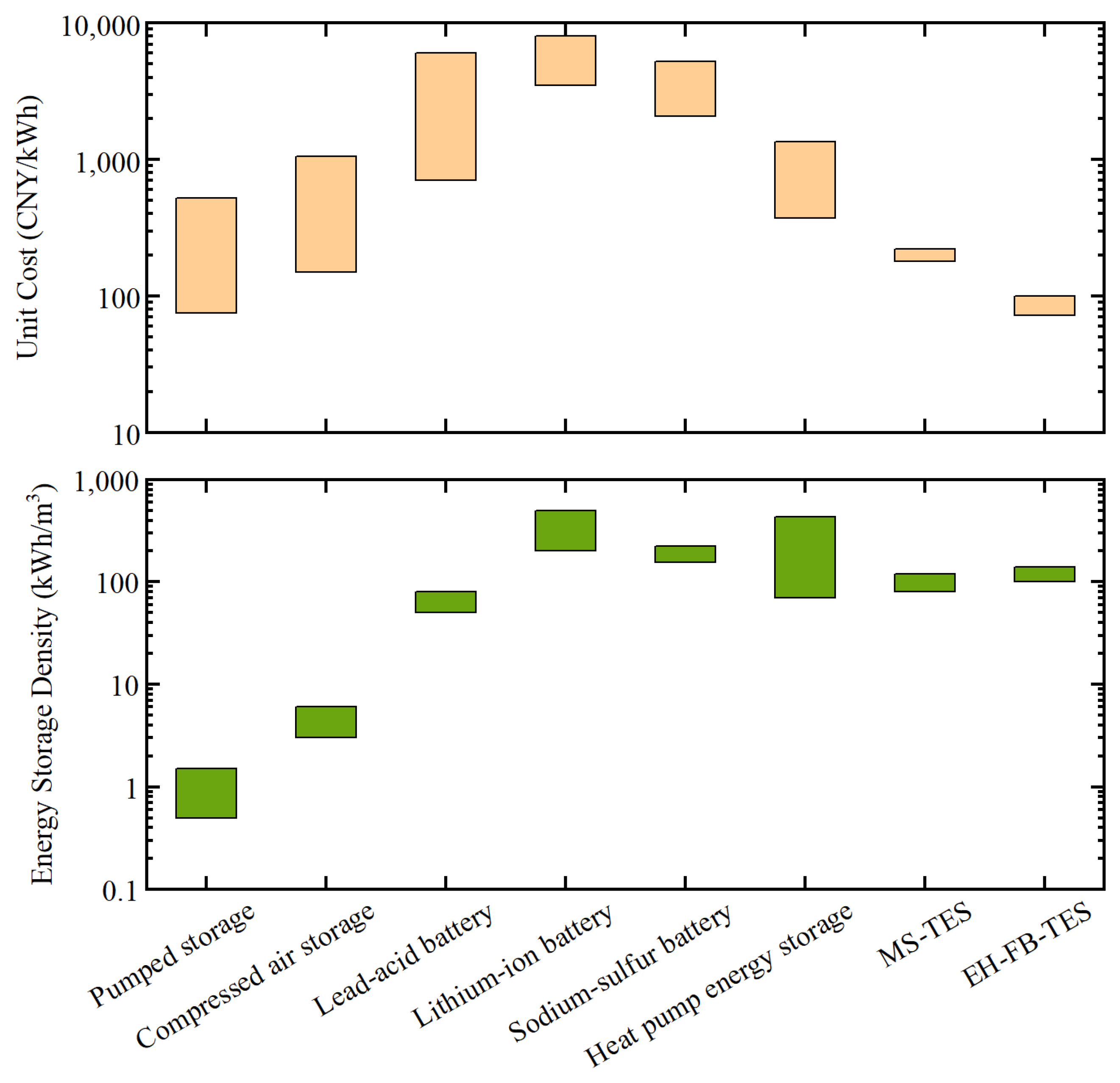 3]. The energy storage density refers to the amount of energy stored in a unit volume of medium, while the power density represents the rate of energy charging and discharging, reflecting the system’s ability for rapid heat exchange and dynamic response. Certainly, the higher the medium temperature, the higher the energy storage density. Presently, in commercial applications, molten salt-based TES (MS-TES) is the one that has the highest working temperature, up to around 560 °C [