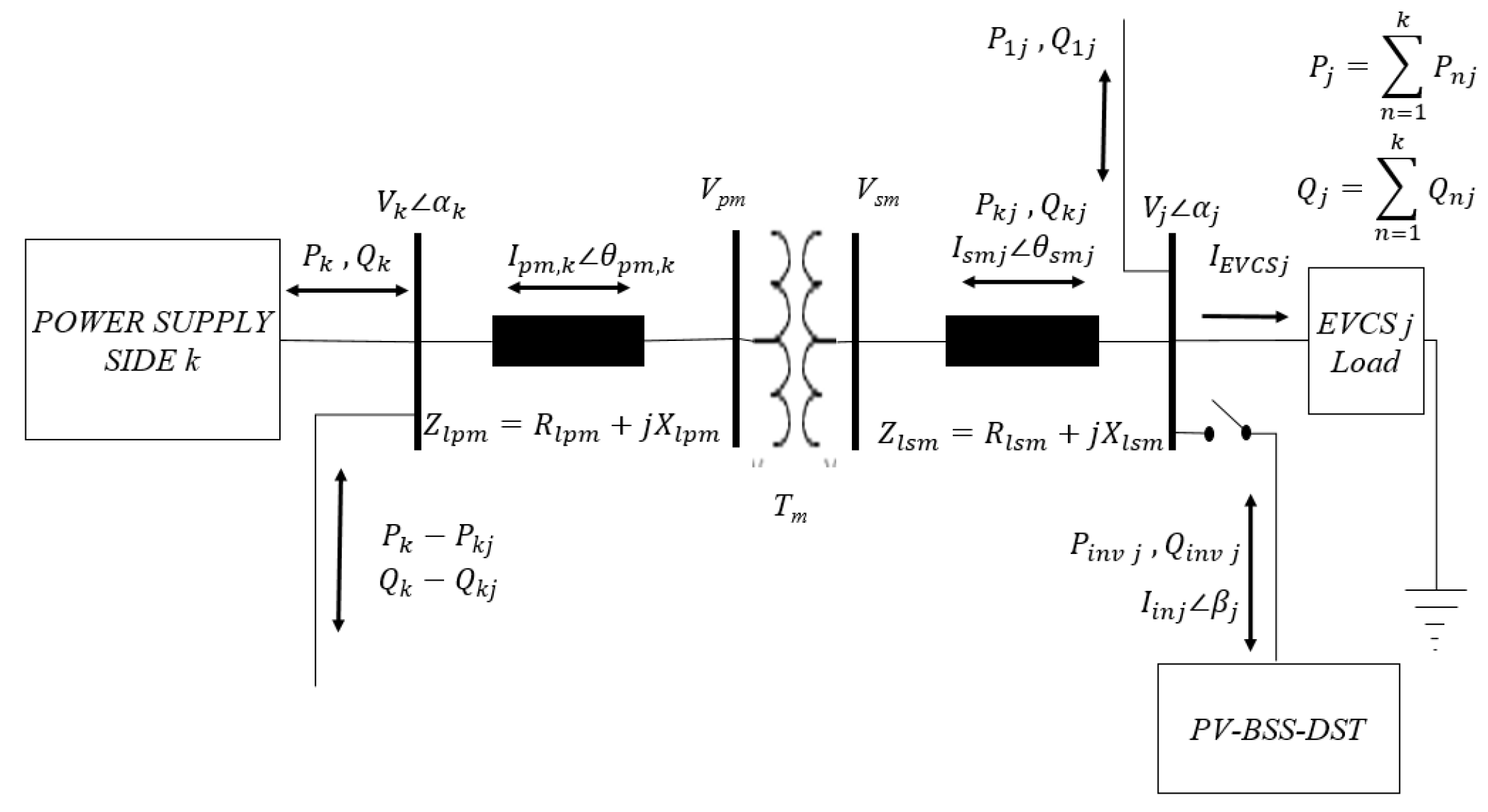 As mentioned earlier, the proposed analytical control framework using a discrete time power electronic model comprises a two-bus radial EDN supplying the EVCS demand and a unified PV-BSS-DST compensating device connected to the DM-PWM controller at the critical load bus DM-PWM controller.