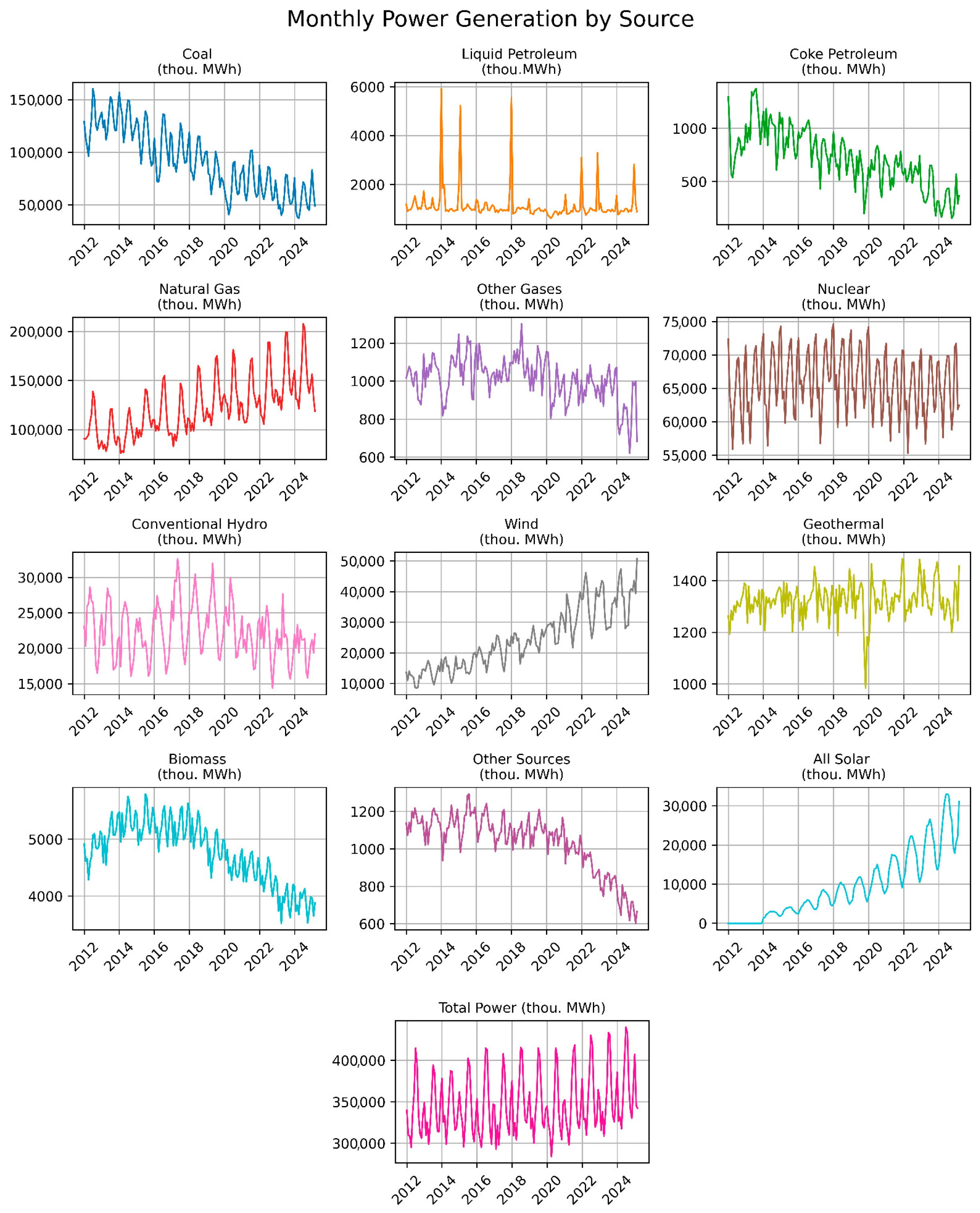 | Model | Total Power | Coal | Liq. Petro. | Coke Petro. | Natural Gas | Other Gases | Nuclear | Conv. Hydro | Wind | Geo-Thermal | Biomass | Solar | Other Sources |