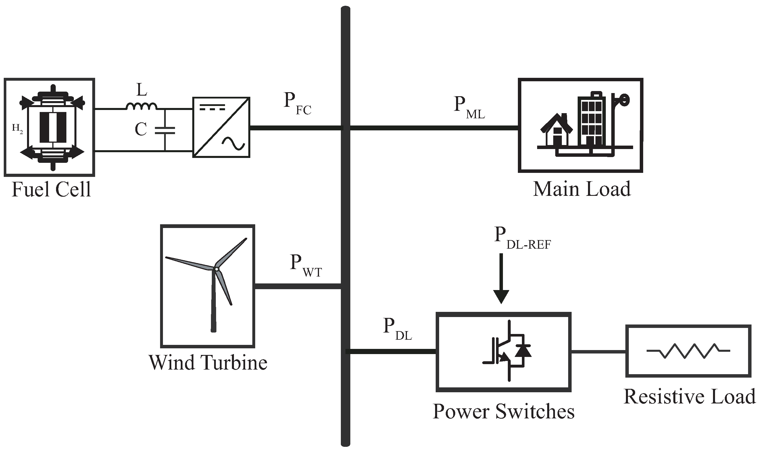 Simulation results confirmed that the wind turbine can supply most of the active power when wind conditions are favourable, while the fuel cell supplements the supply only when wind generation is insufficient. Furthermore, the effectiveness of the no-reverse-power control strategy was validated by incorporating a DL, which adequately absorbed excess active power, protecting the fuel cell from undesirable operating conditions.