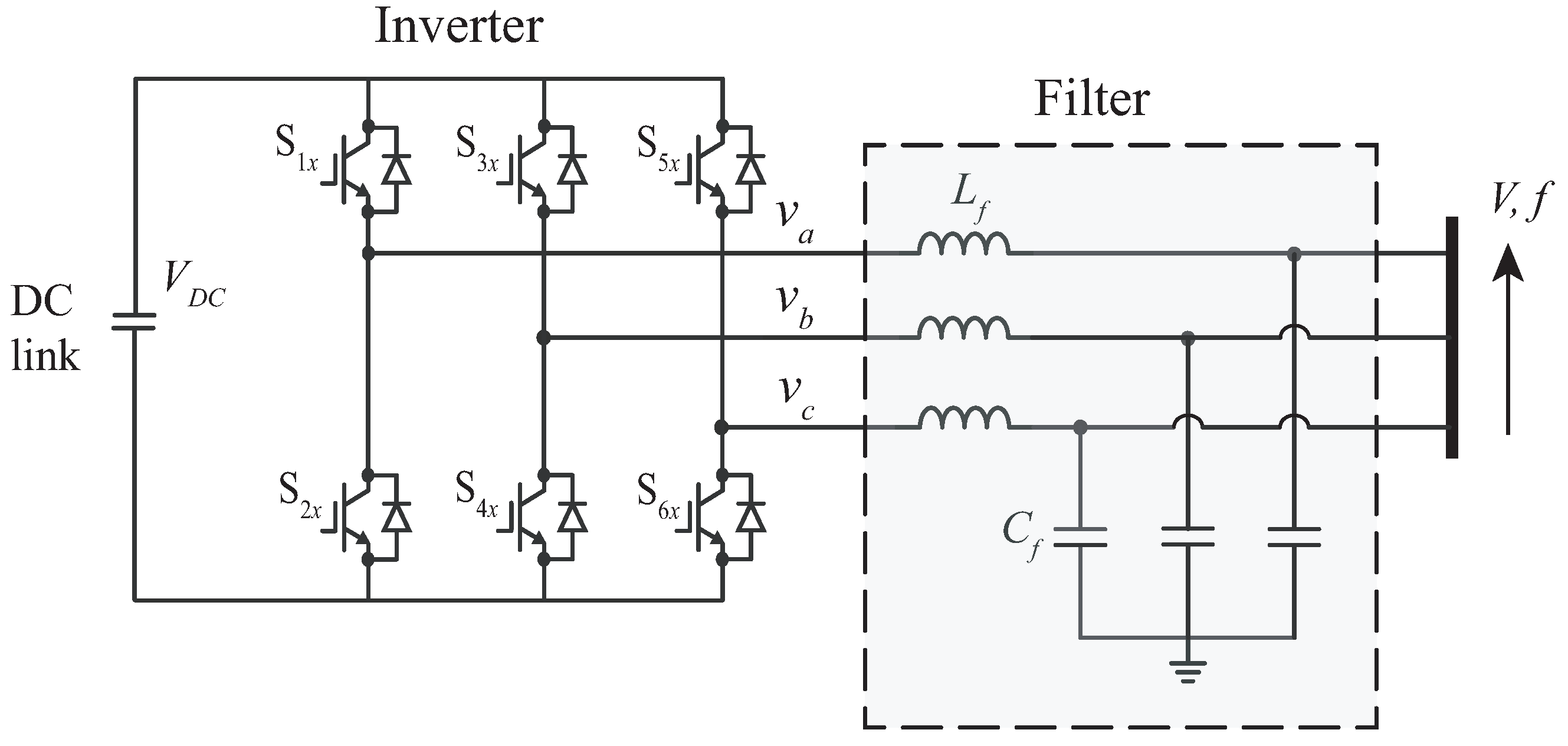 Figure 3 shows the general control structure of the GFM system, based on an external voltage control loop and an internal current control loop, implemented in the synchronous