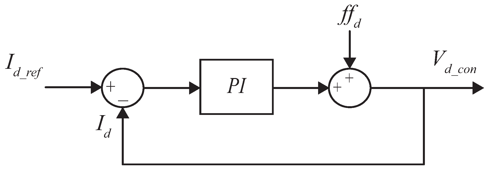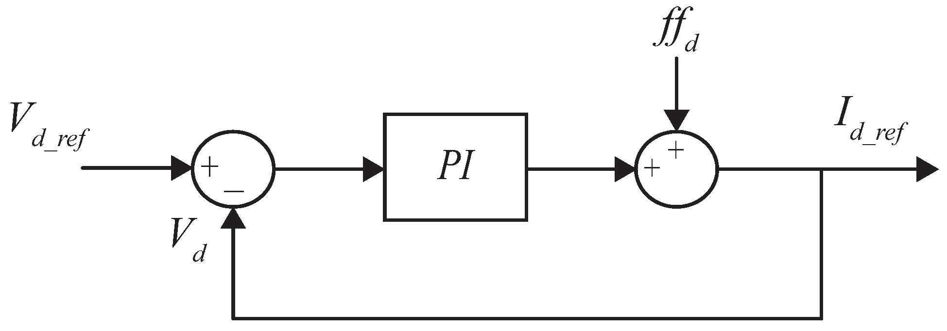 To improve the system’s dynamic response and compensate for the cross-coupling effects inherent in the transformation, feed-forward terms dependent on the electrical frequency and measured currents are incorporated, reducing the controller load and improving transient stability. Because the plant is essentially an integrator corresponding to the filter capacitance, this commonly used procedure is the technical optimum. Load feed-forward improves the dynamic response.