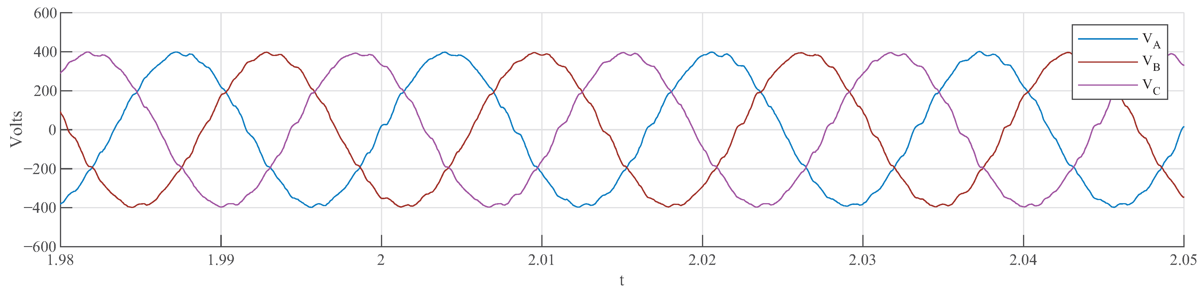 Figure 13 shows the three-phase voltage waveforms for this case. As can be seen, the phase voltages