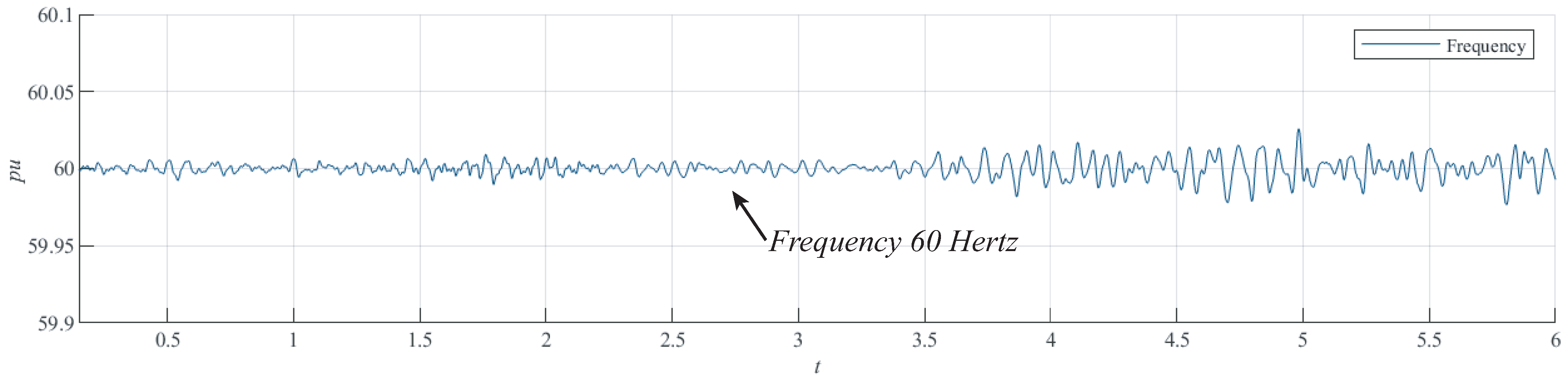 Figure 16 show that the system’s frequency and voltage remain properly regulated during all the simulation periods.