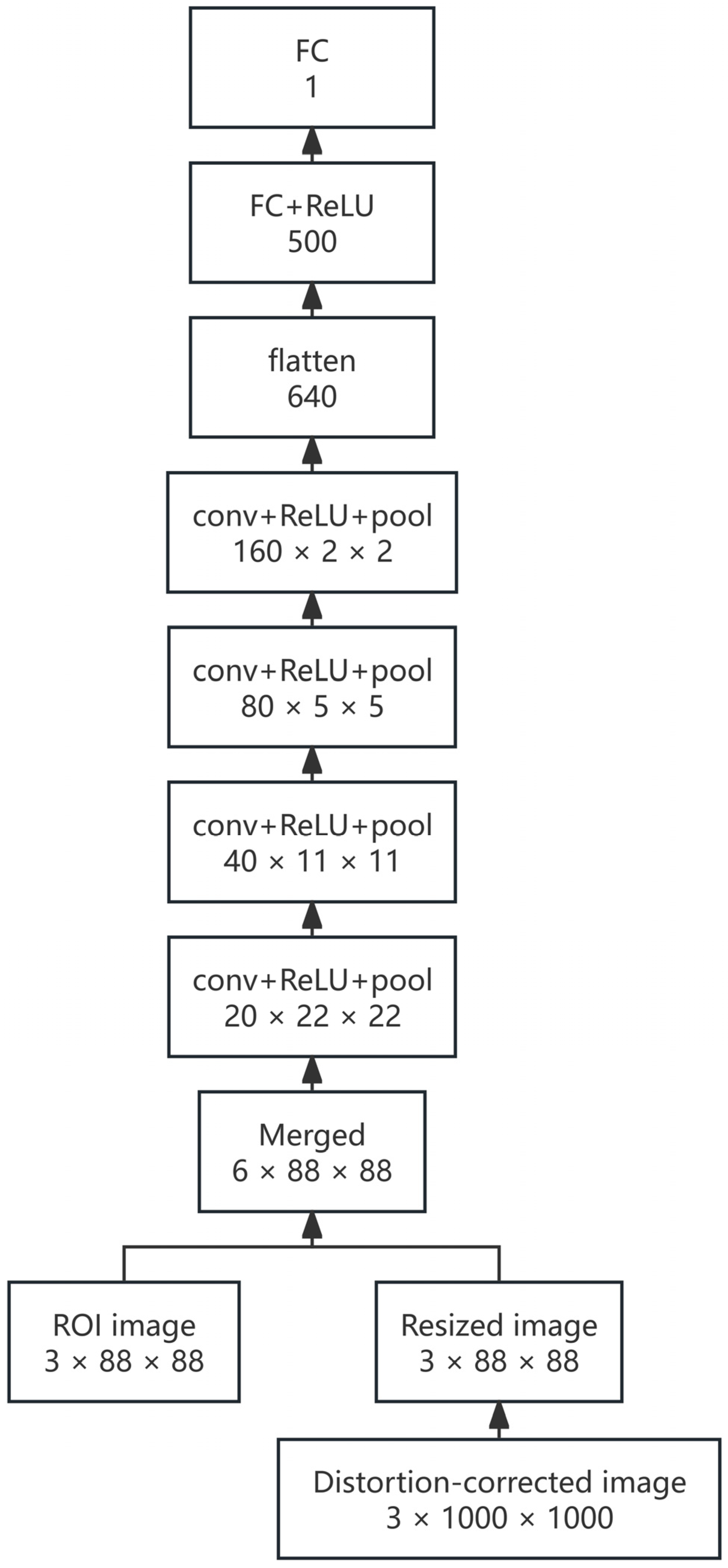 - Input Layer: Two 3-channel images (ROI: 3 × 88 × 88; downsampled all-sky image: 3 × 88 × 88).