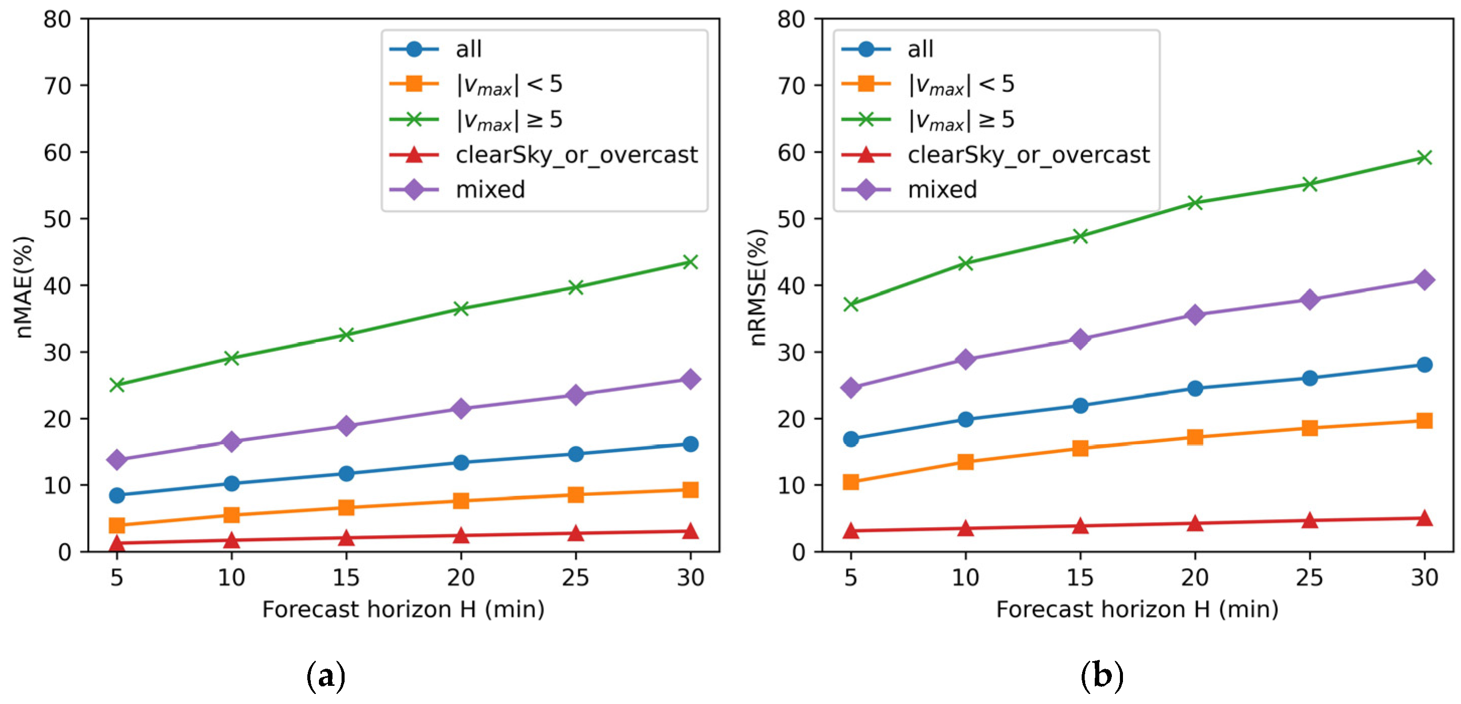 - Data Grouping and Training: We partition the data based on whether the maximum cloud pixel velocity exceeds 5. Only data with are used for training the motion model. In contrast, Karout et al. utilize the mixed situation dataset for training where clear-sky/overcast data with low variability are included.