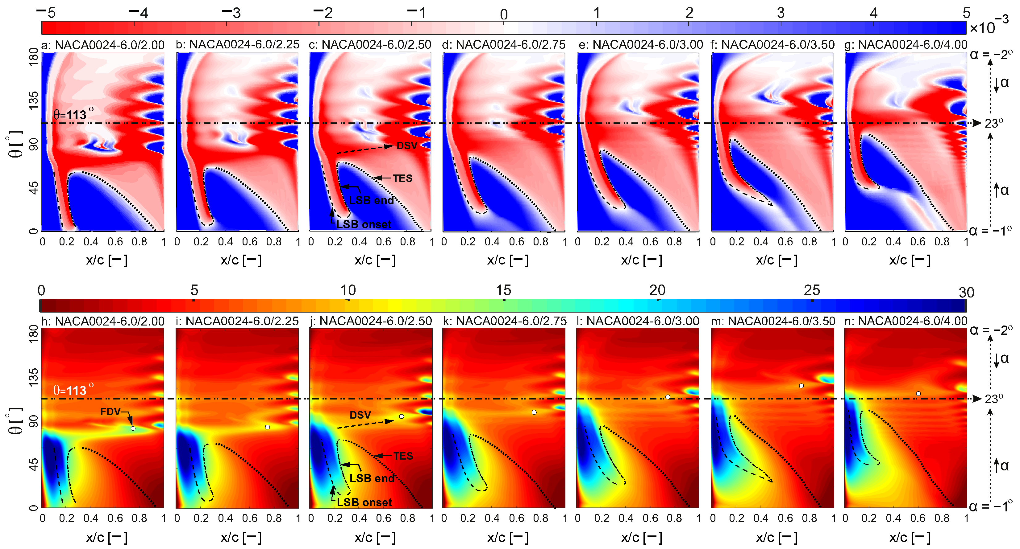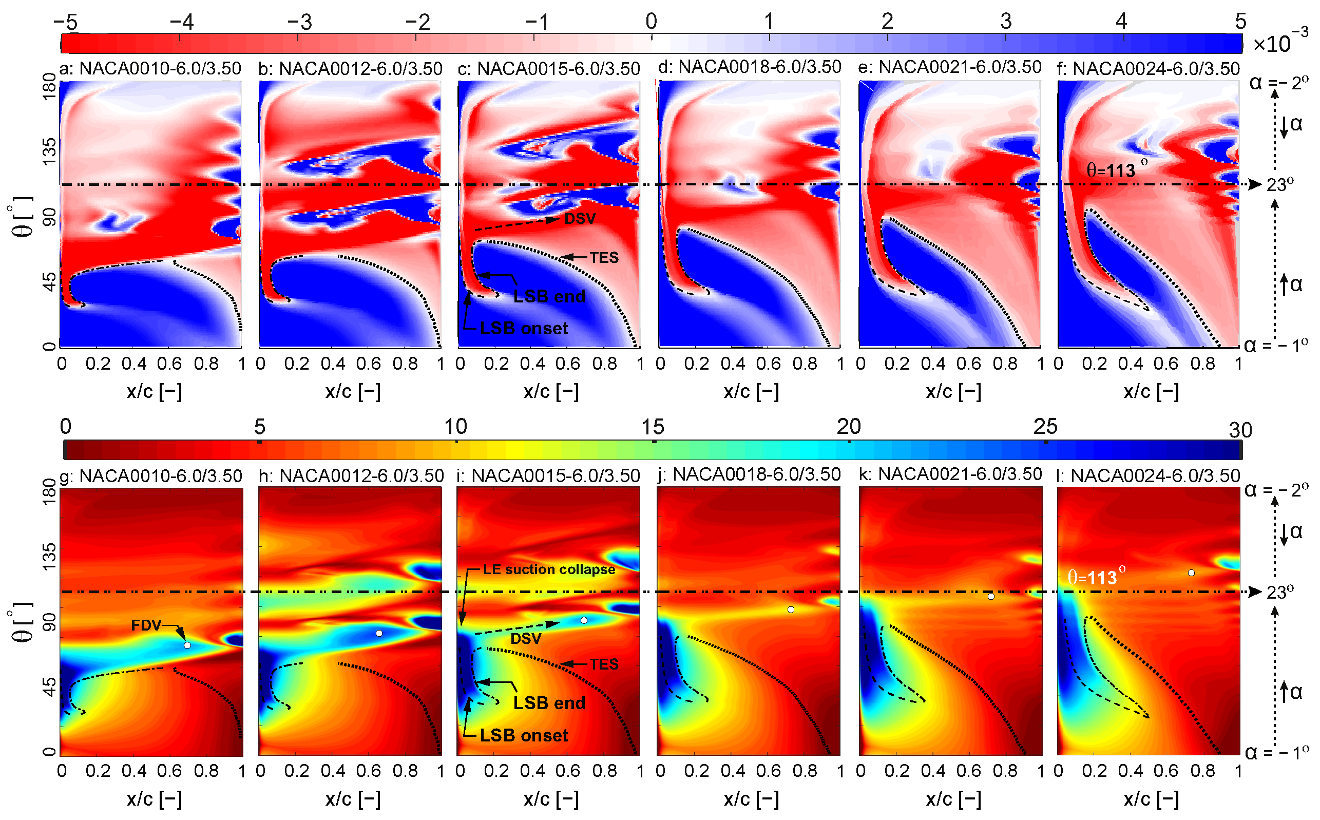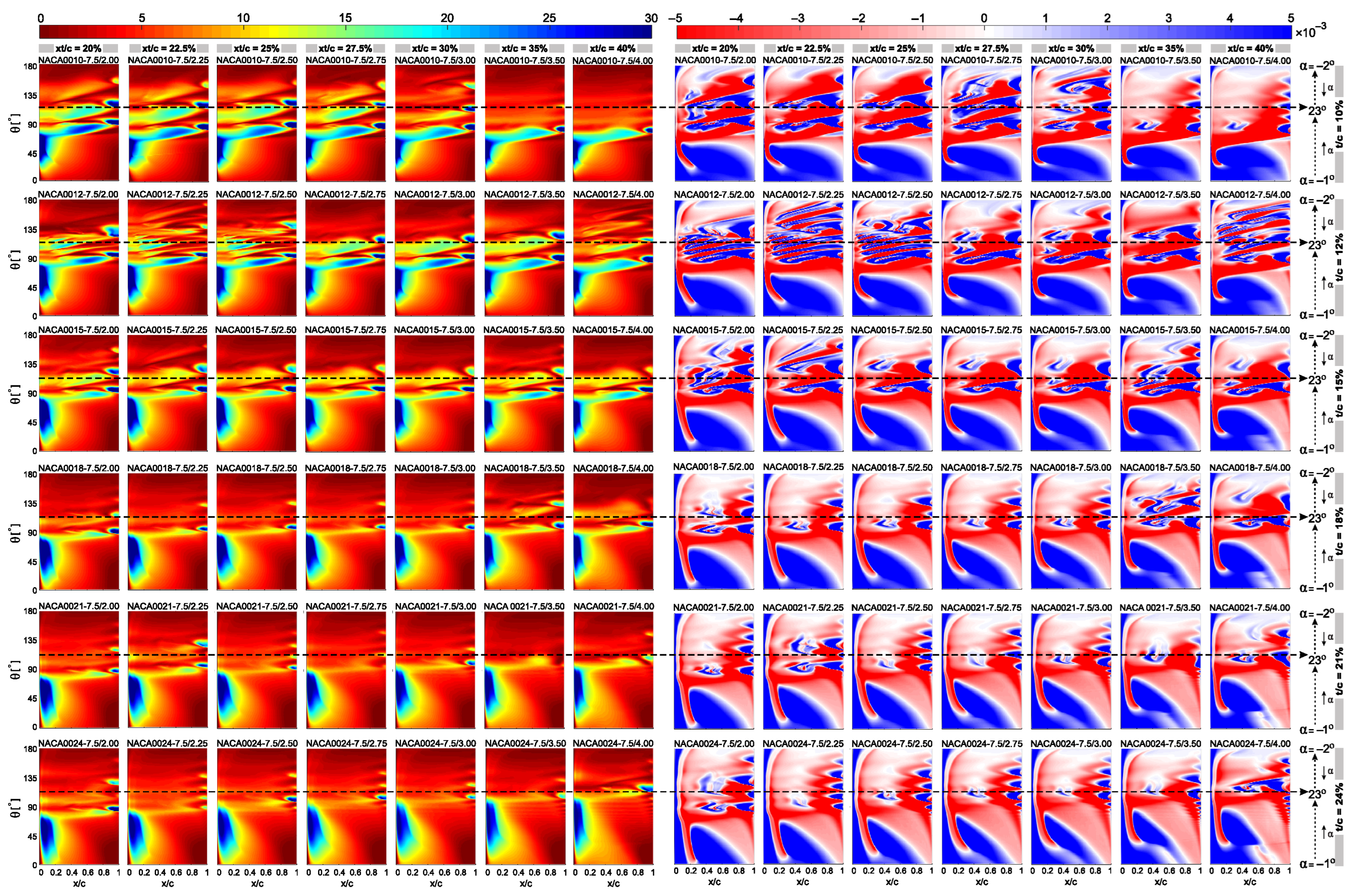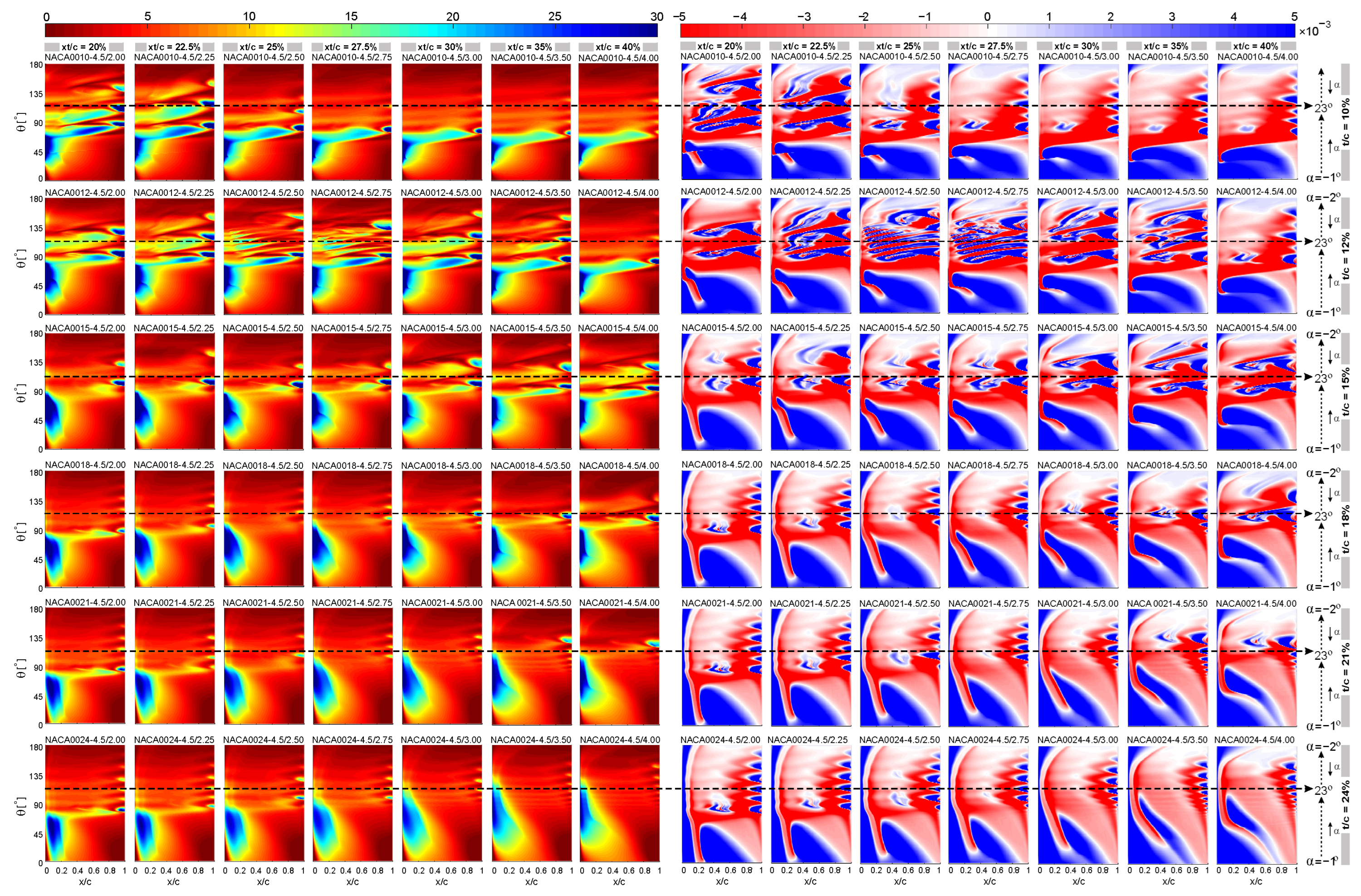 Appendix A. Full Spatiotemporal Cf and CoP Contours for the Complete Airfoil Set