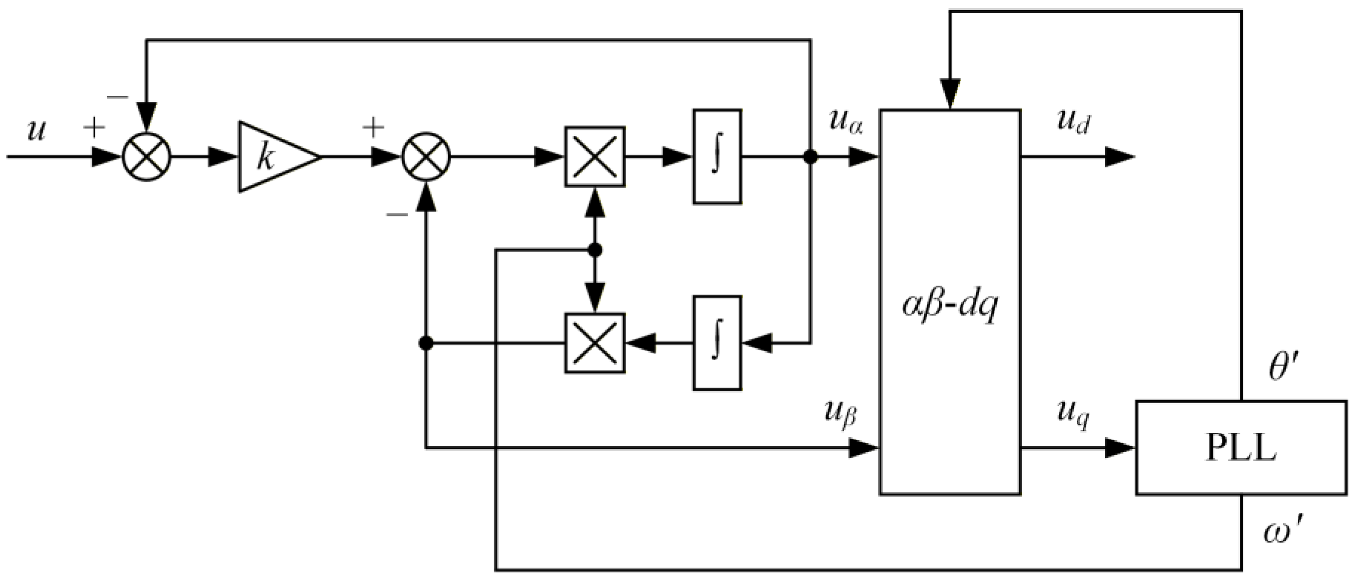 - Zhang, Y.; Shen, Y.; Wang, T.; Cheng, T.; Chen, Z. An Improved SOGI-PLL for DC Offsets and Frequency Ramps. J. Electr. Eng. Technol. 2025, 20, 4231–4242. [Google Scholar] [CrossRef]