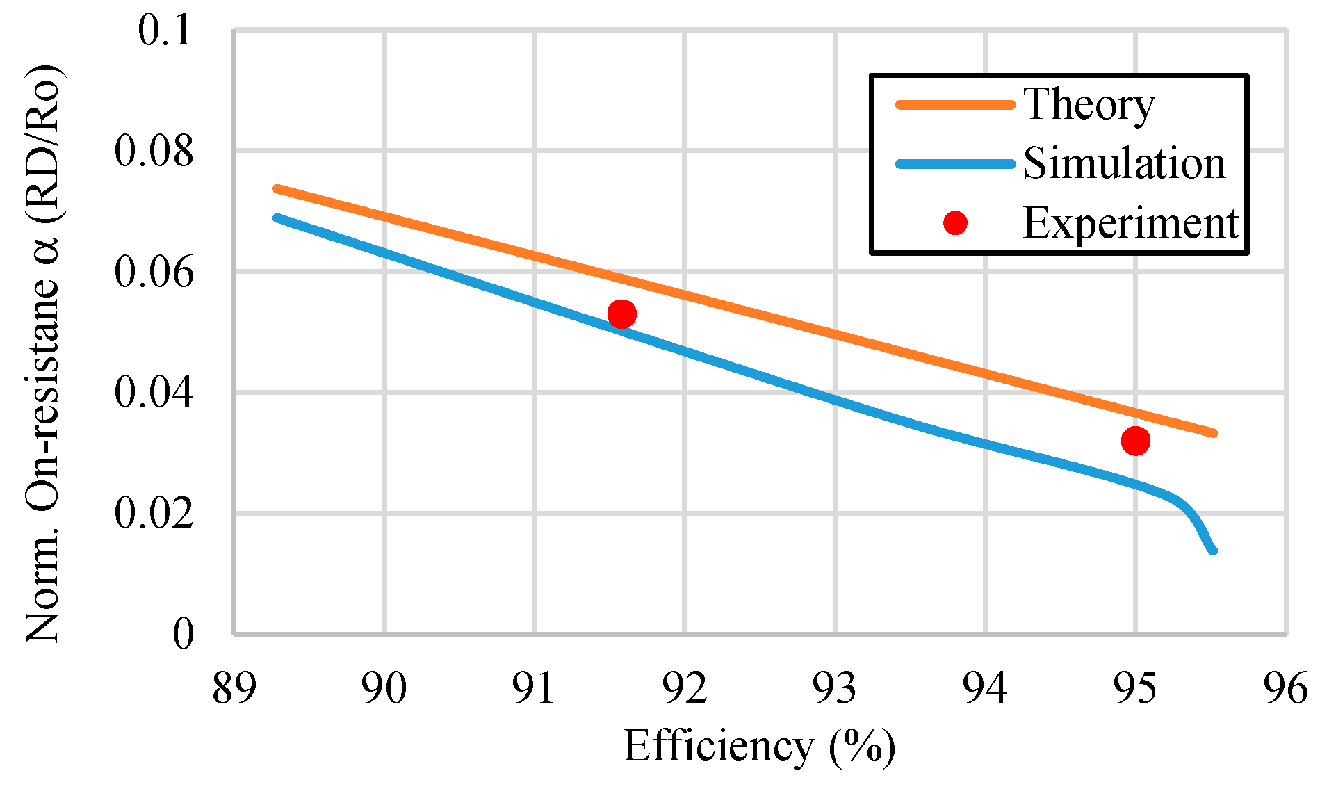 Figure 4. Normalized on-resistance vs. power efficiency.