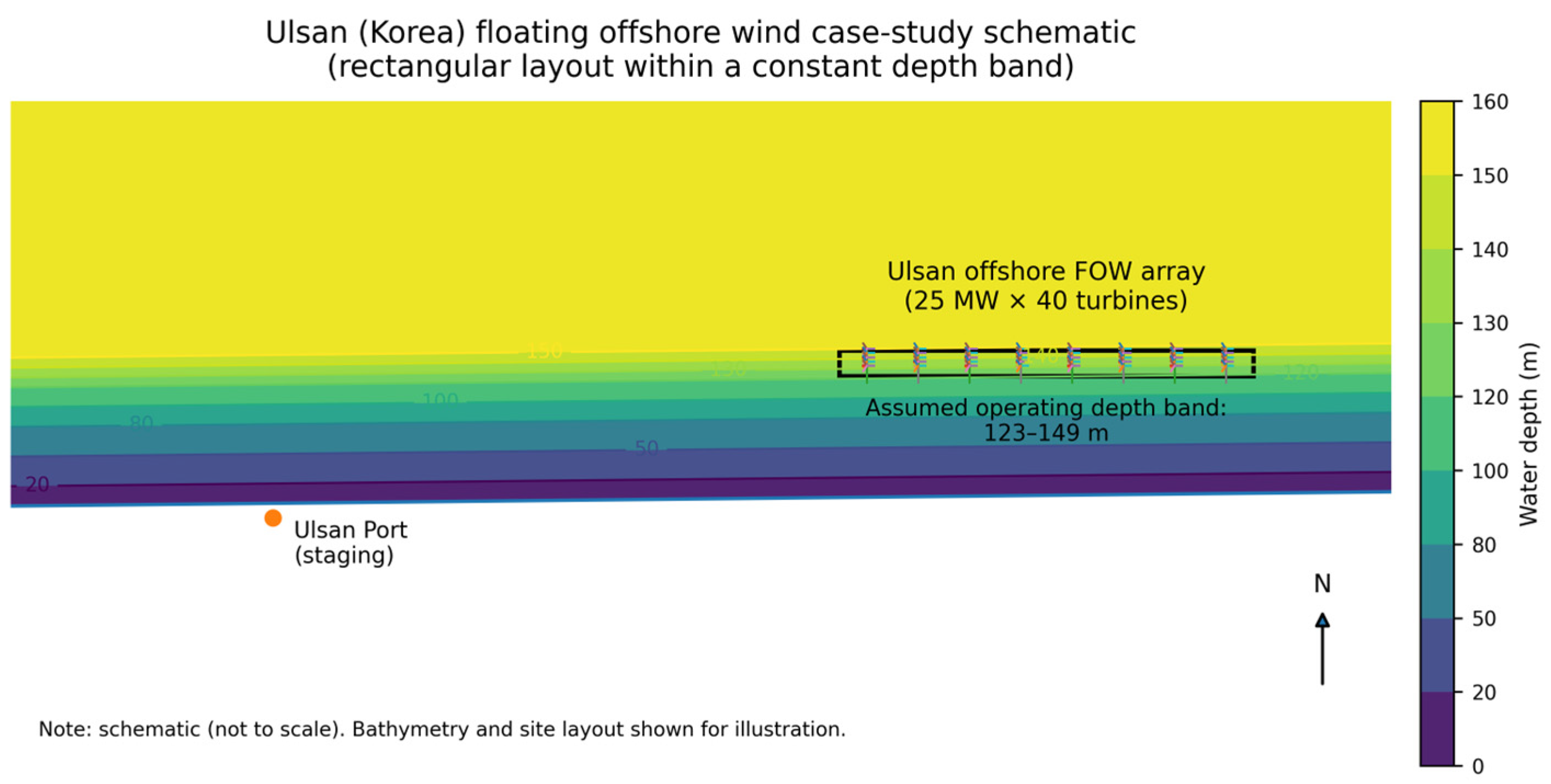 Figure 1 reports the Ulsan floating offshore wind case-study schematic.