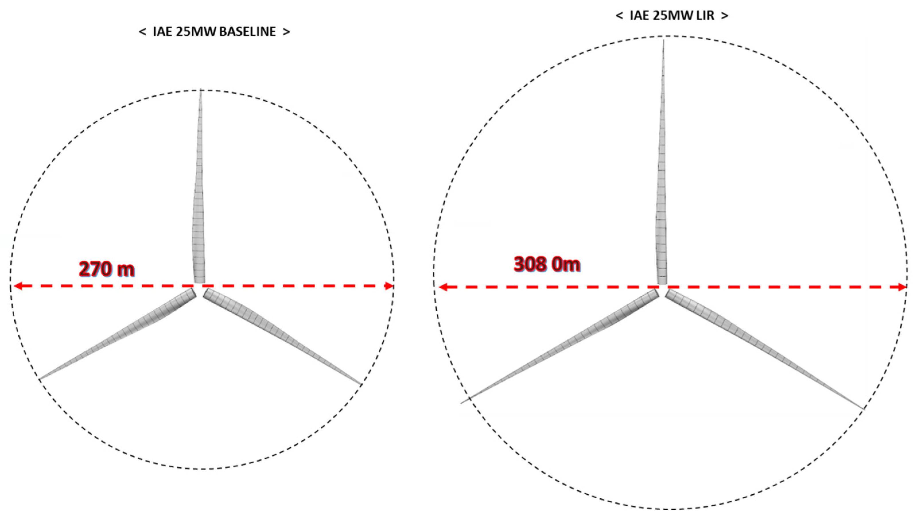 Figure 2 shows the designed Baseline and LIR rotors for 25 MW offshore wind turbines.