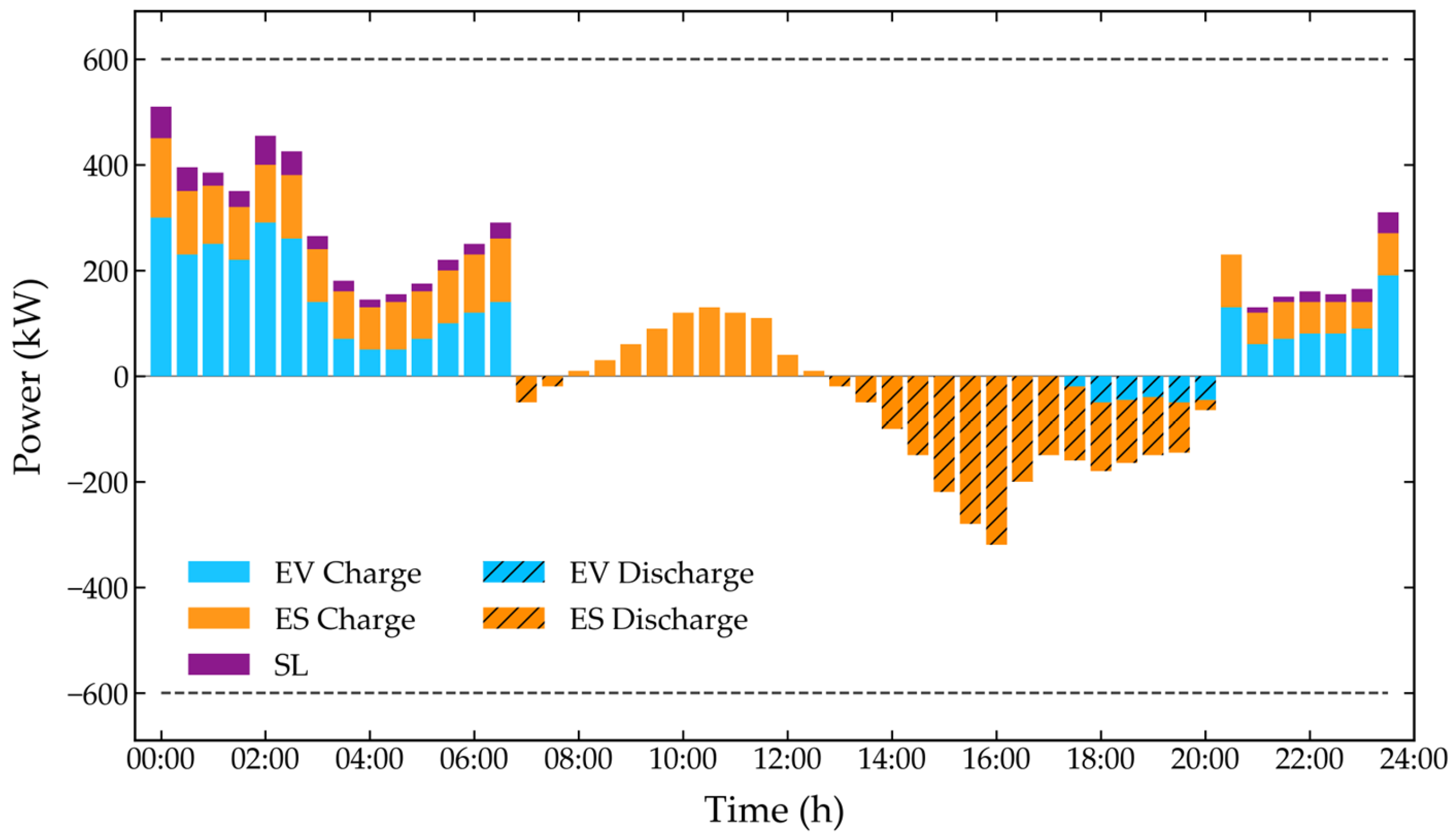 During the distributed execution phase, to accommodate the strong stochasticity of source-load variations and preserve data privacy, each agent relies solely on local observations for independent decision-making. Given that PV output, load demand, and dynamic prices exhibit strong sequential dependencies over time, simple fully connected networks cannot effectively capture their upcoming evolutionary trends. Consequently, this study integrates an LSTM network into the Actor as a state encoder to process the observational sequences over the upcoming three-hour forecast window and extract long-term temporal features . Compared to relying directly on discrete point prediction values, the high-dimensional hidden states extracted by the LSTM preserve the probability distribution and temporal trend characteristics of the upcoming source-load fluctuations. This feature representation empowers agents with a forward-looking perspective, enabling them to make robust scheduling decisions even when faced with source-load uncertainties. Furthermore, considering the homogeneity of prosumer devices within the community and to avoid network parameter explosion as the number of agents increases, a parameter-sharing mechanism is adopted in the Actor network. Specifically, all agents share the same set of Actor network weights for policy learning, while performing decentralized inference based on their respective local observations. Finally, the temporal dependency features are concatenated with the device internal states represented by the triplet , and undergo linear mapping to construct the final local observation state feature for agent n. Based on , the shared Actor network outputs a hybrid action distribution.