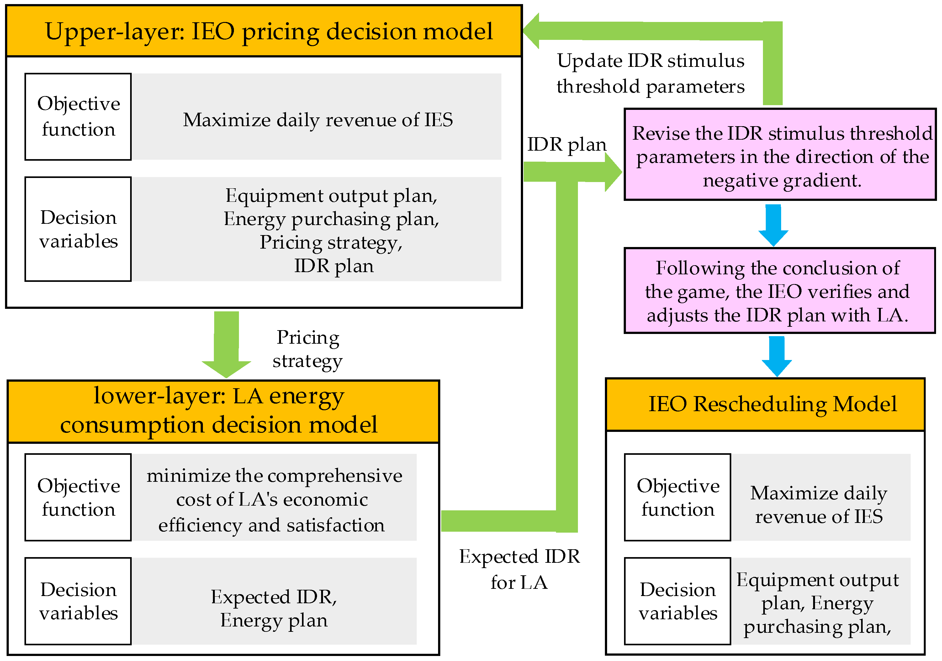 - A response adjustment mechanism is designed. After the Stackelberg game concludes, the IEO verifies and adjusts the IDR plan with the LA to ensure its practical feasibility.