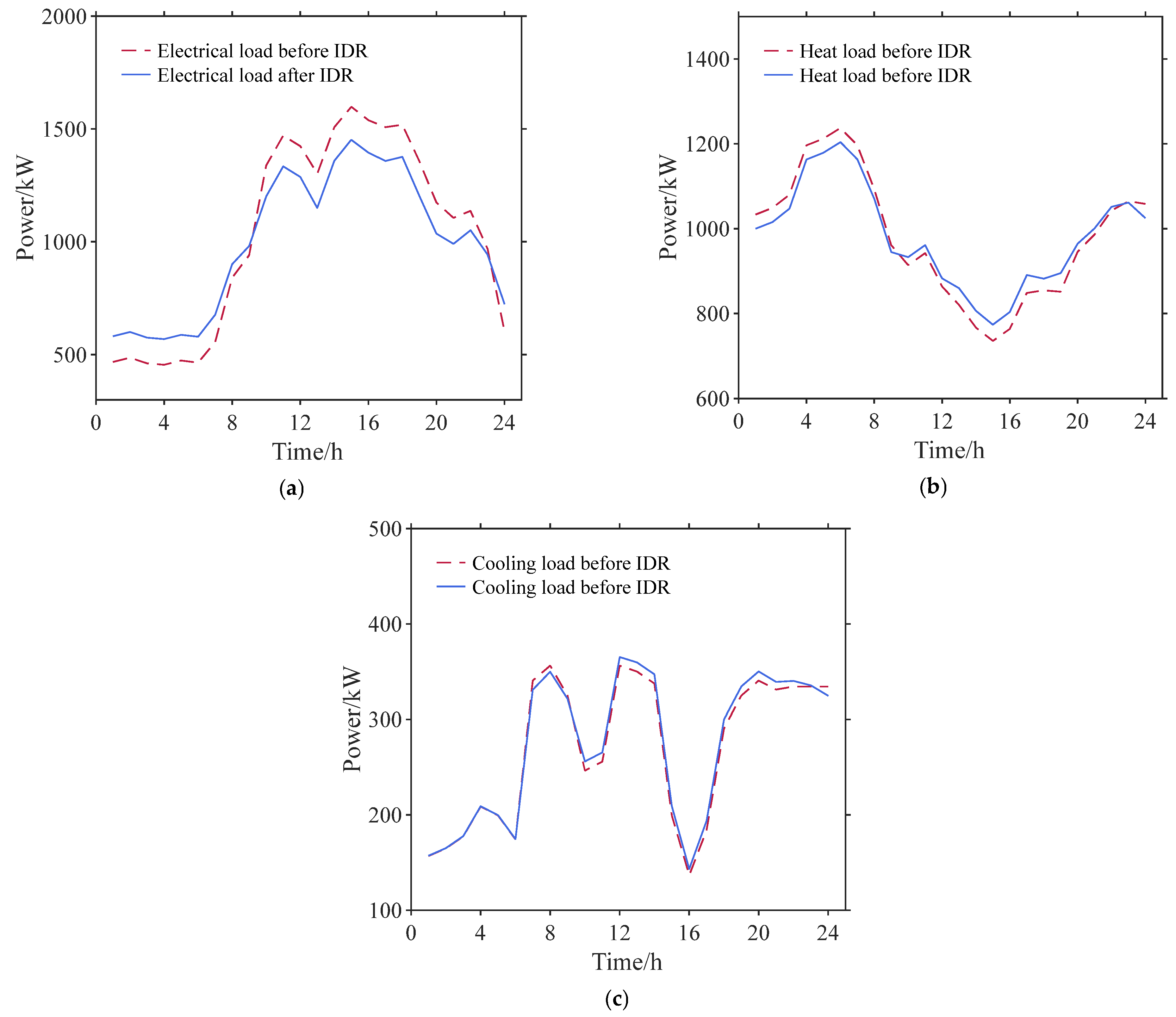 - The IES Stackelberg game model proposed in this paper, the IEO employs the IDR model to support decision-making. Compared to scenarios without GD-DRPR, carbon emissions were reduced by 13.29%, while the IEO’s total revenue increased by 8.83%, achieving synergistic improvements in both the economic efficiency and low-carbon performance of IES operations.