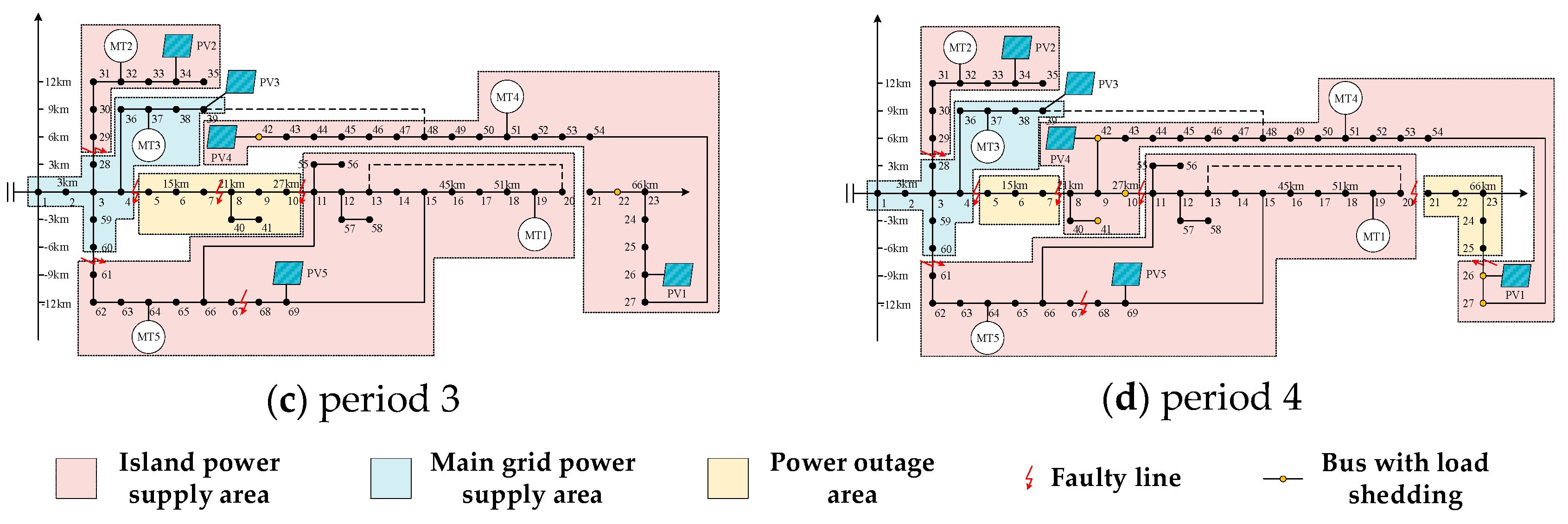 - Xu, J.; Zhang, T.; Du, Y.; Zhang, W.; Yang, T.; Qiu, J. Islanding and dynamic reconfiguration for resilience enhancement of active distribution systems. Electr. Power Syst. Res. 2020, 189, 106749. [Google Scholar] [CrossRef]