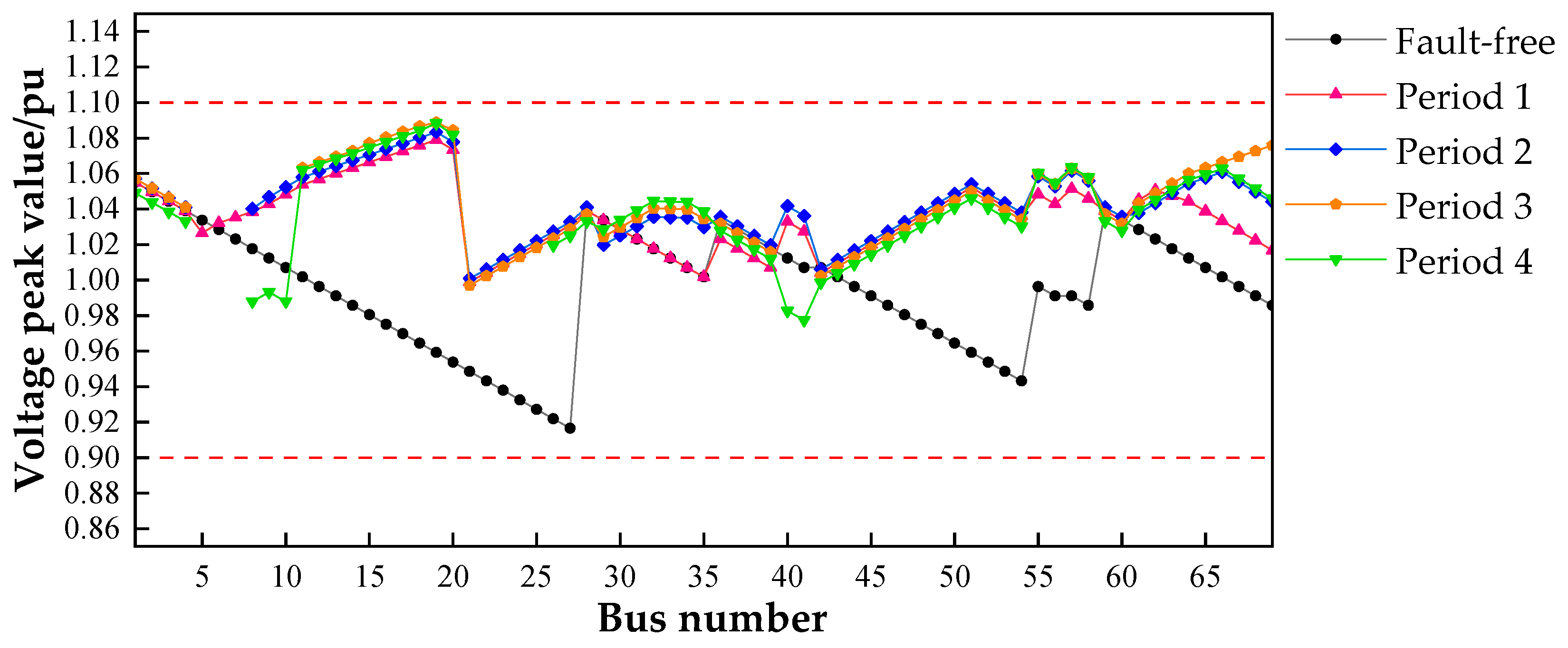 - Tang, W.; Wei, C.; Qian, T.; Huang, Y. A multi-stage coordinated resilience enhancement strategy for distribution networks considering voltage quality. Int. J. Electr. Power Energy Syst. 2025, 172, 111312. [Google Scholar] [CrossRef]