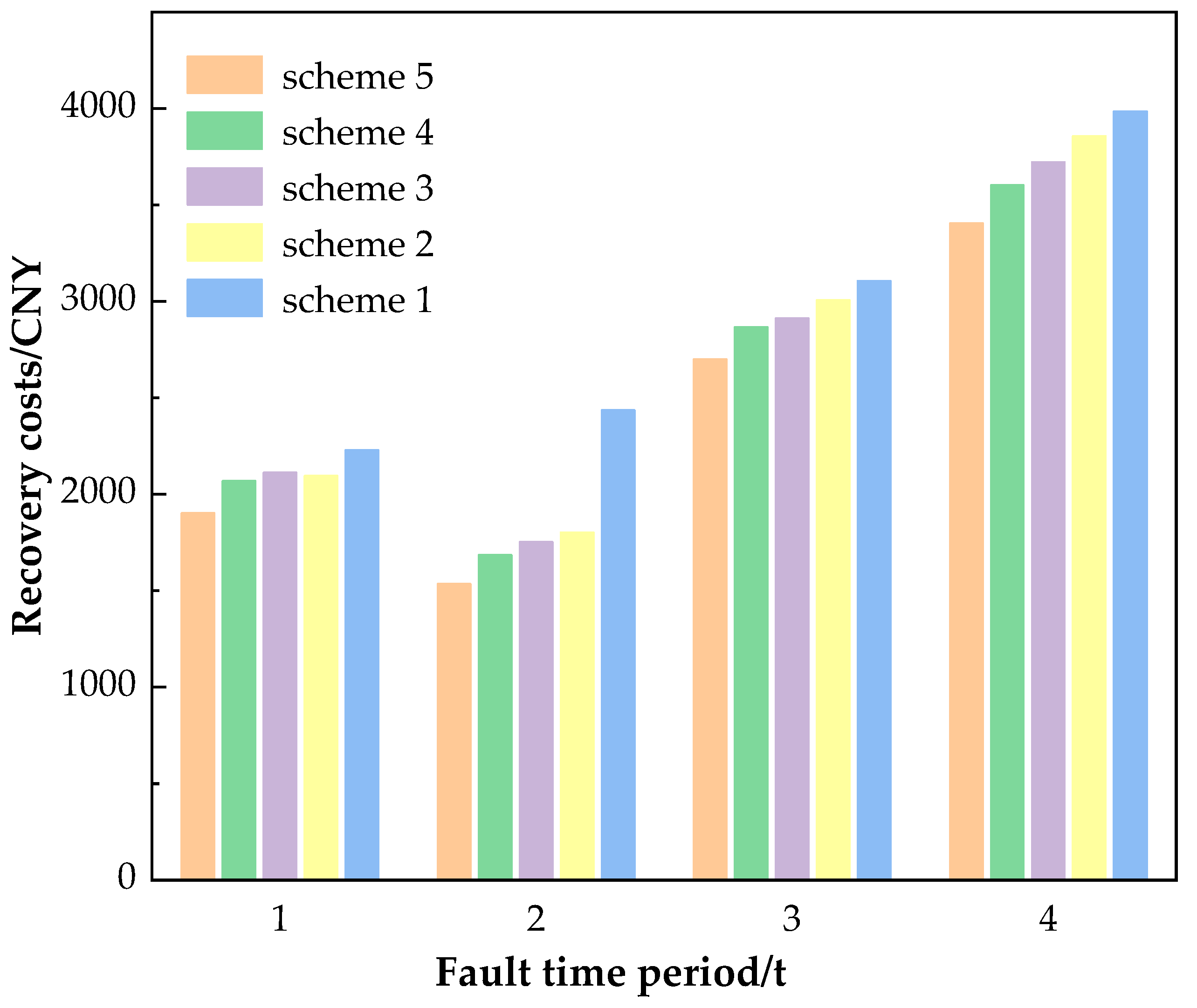 | Fault Restoration Scheme | Restoration Cost/CNY | Restoration Rate of Each Period/% | Solution Time/s | |||