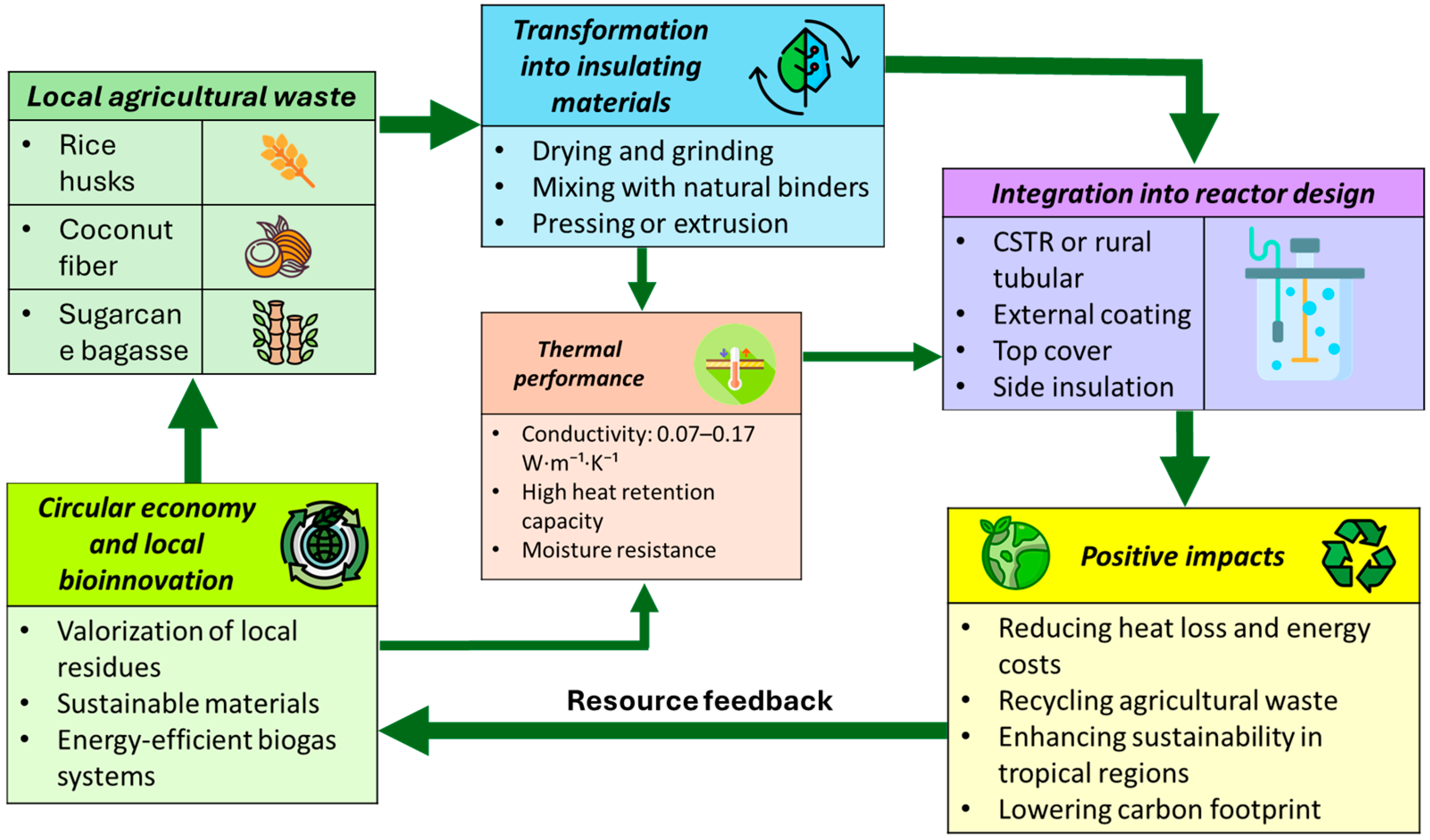 - Ventura-Prados, A.; Solís-García, J. Design, Monitoring, and Application of a Cost-Effective Bioreactor for Biogas Production. bioRxiv 2025. [Google Scholar] [CrossRef]