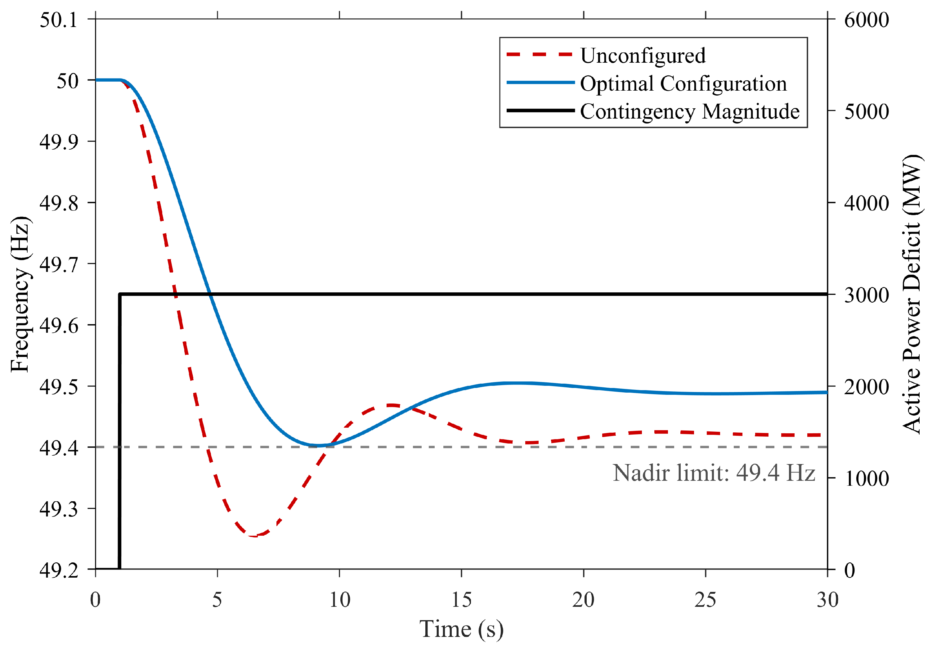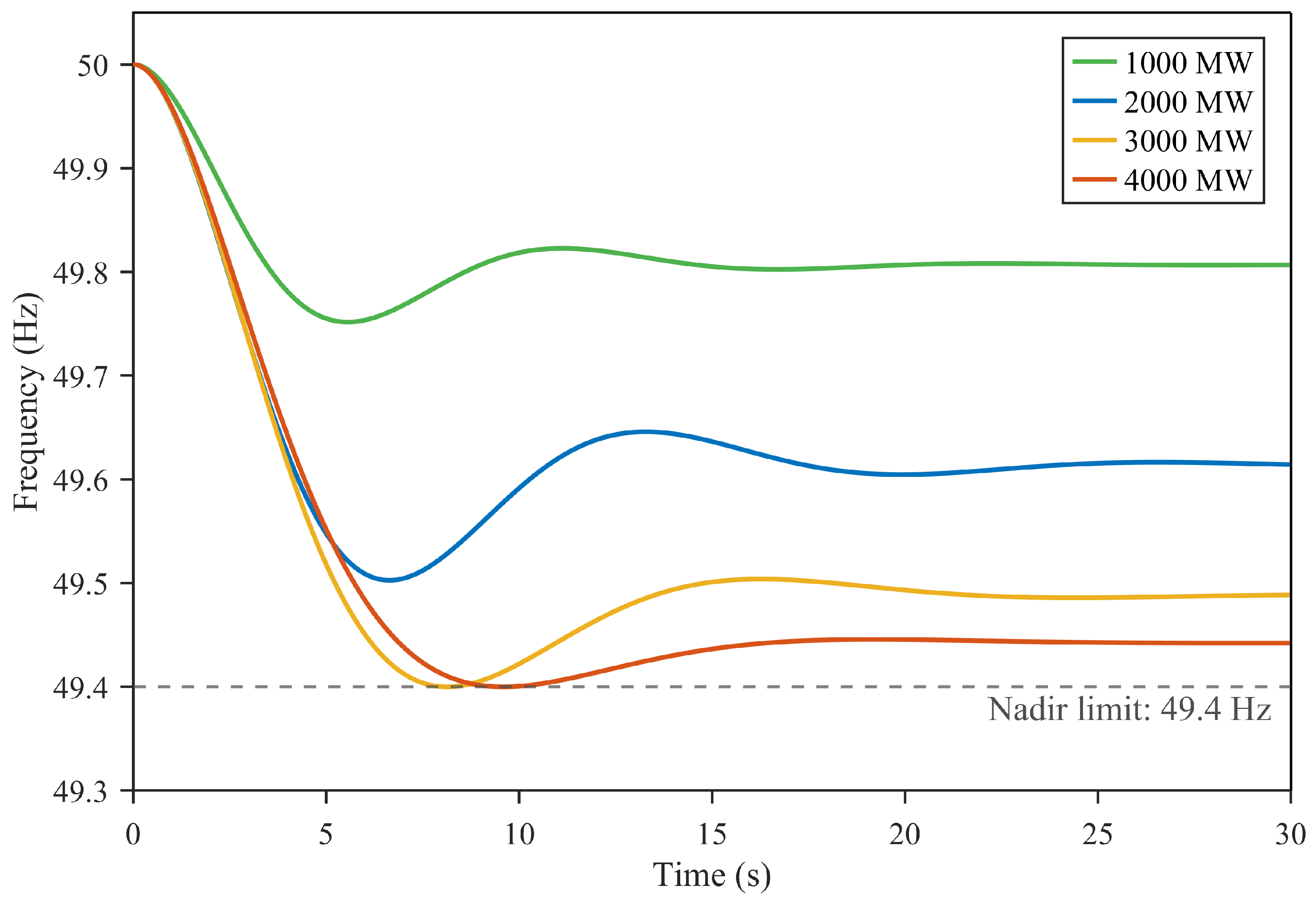 | (MW) | (s) | Total Cost ($) | RoCoF (Hz/s) | (Hz) | |