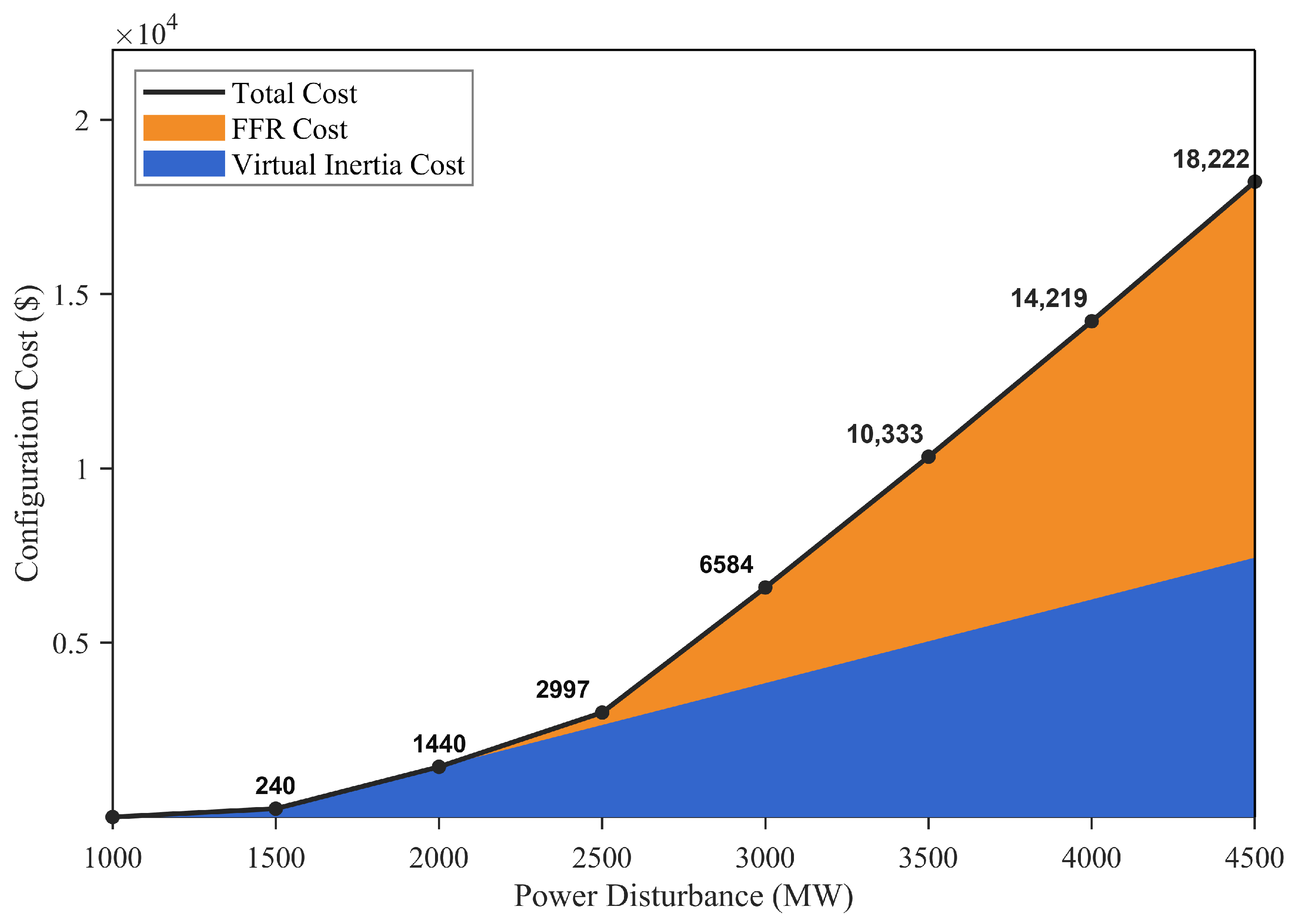 - Through systematic case studies across multiple renewable generation integration levels and credible contingency magnitudes, the variation patterns of VI and FFR configuration requirements and system cost under different scenarios are quantitatively revealed, the condition boundaries under which each resource type dominates frequency security are identified, and quantitative guidance is provided for economically optimal resource planning in low-inertia grids.
