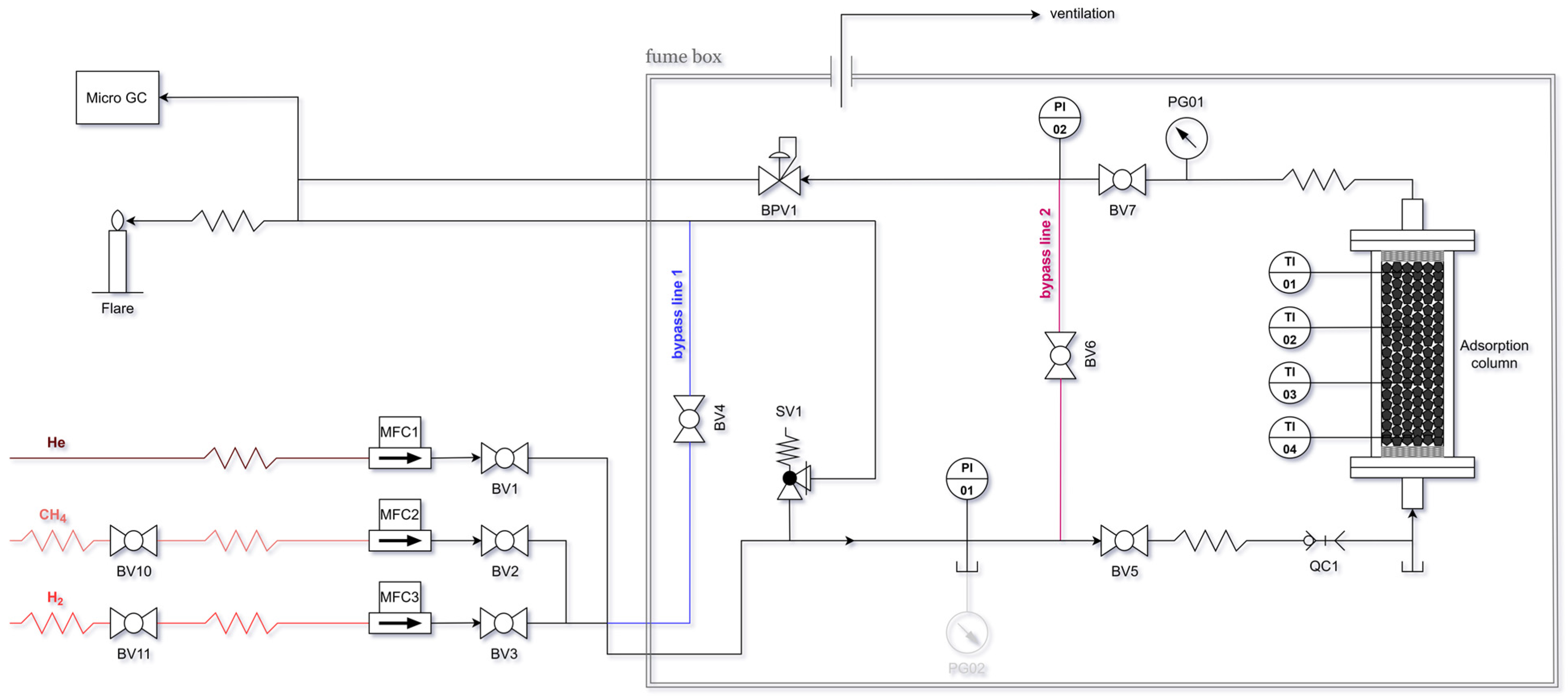 Figure 3 correspond to adsorption capacities derived from dynamic breakthrough experiments rather than true equilibrium adsorption isotherms. These measurements were conducted under varying total pressures and gas compositions, and therefore do not fulfill the strict requirements for equilibrium isotherms (constant temperature, constant gas composition, and systematic variation in adsorbate partial pressure). The data are intended to provide a representative assessment of adsorption performance under realistic PSA operating conditions.