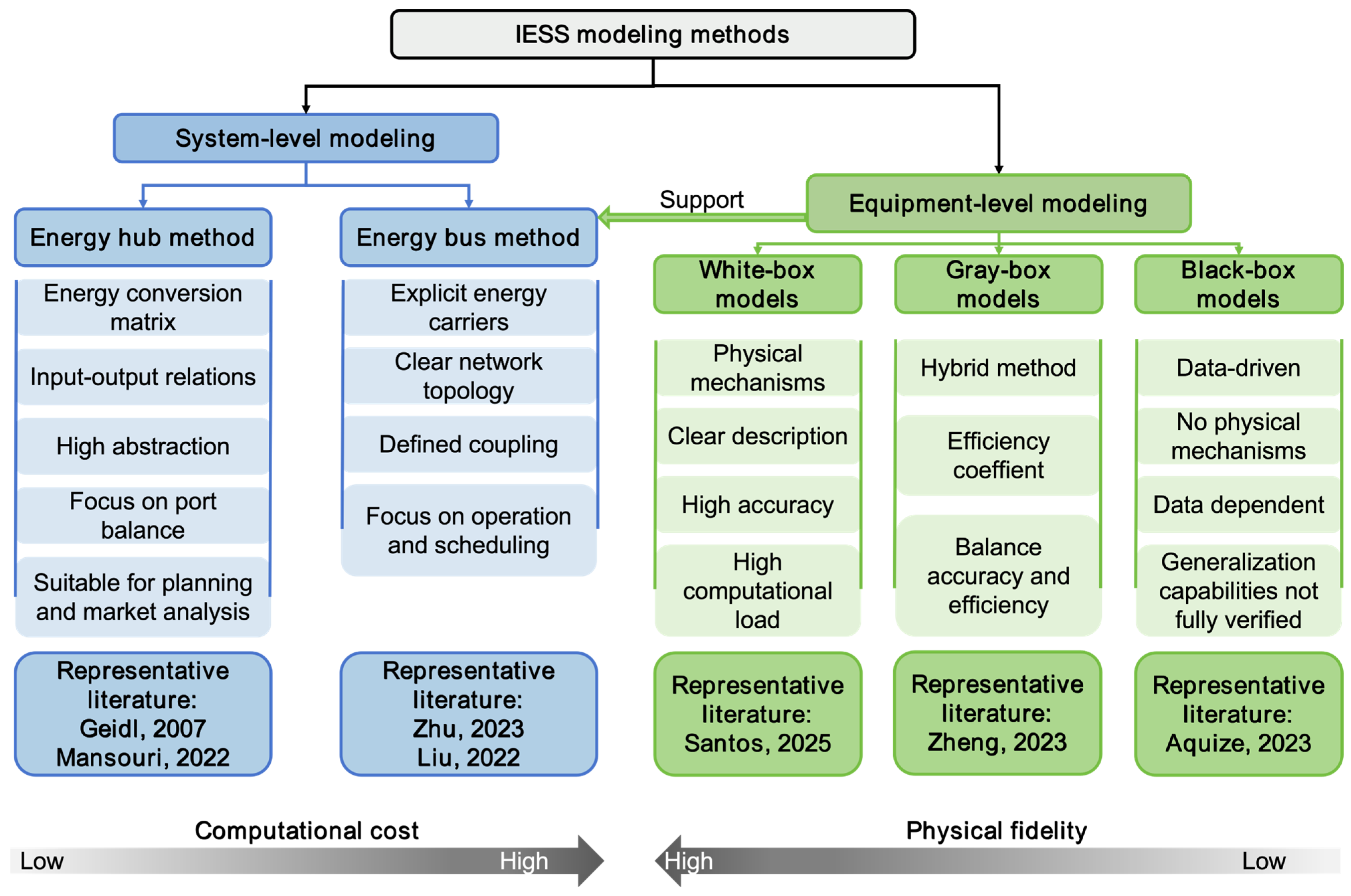 - A systematic review of multi-energy system modeling approaches for IESSs in IPs under dynamic supply–demand conditions, including the modeling methods for conventional operating conditions and variable operating conditions.