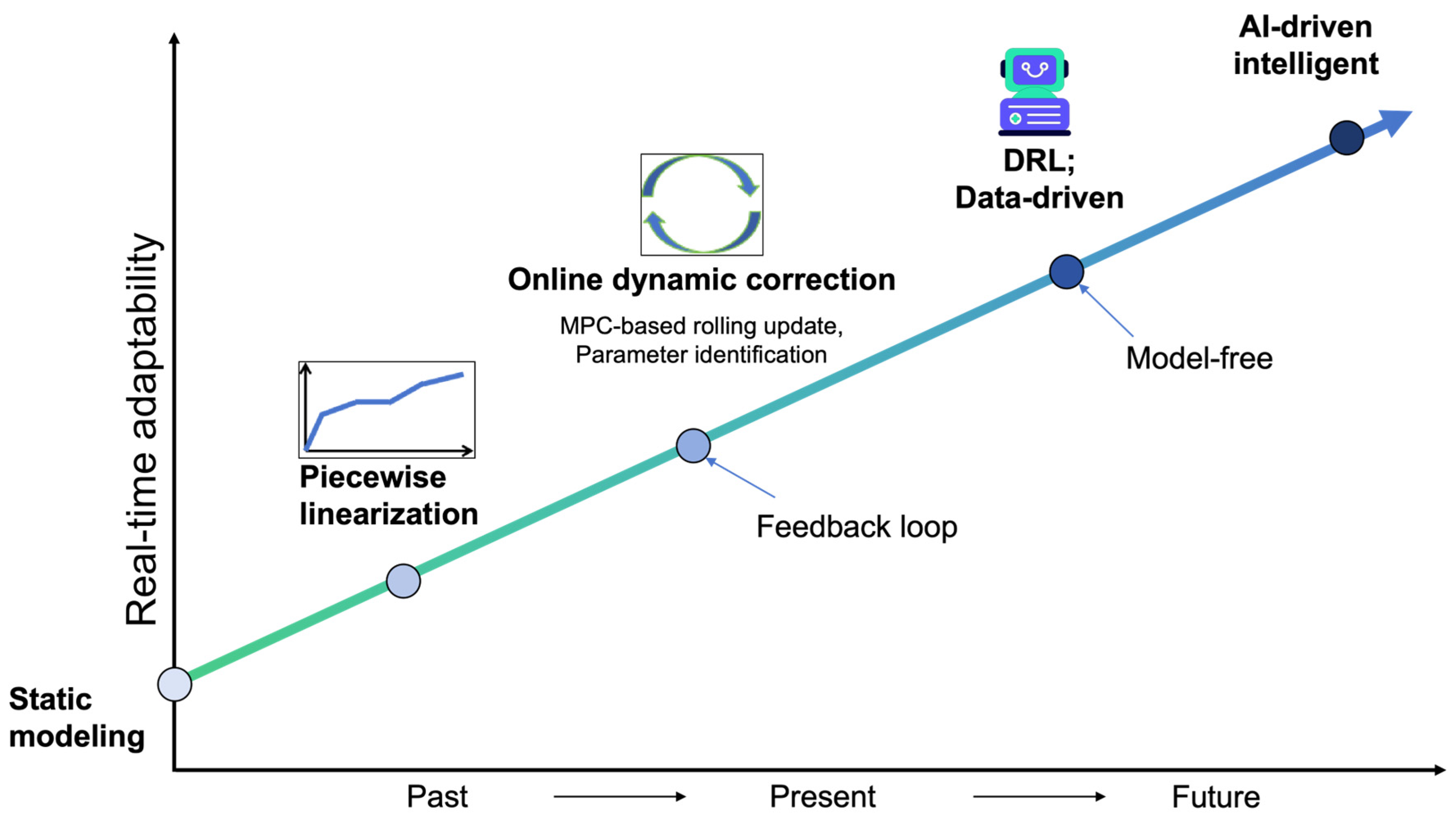 | Intrinsic characteristics | Thermal inertia [97,98,99,100,101] | Simulation-dominant | Virtual storage/buffering | Slow (min~h) | Low cost; utilizing existing infrastructure | Limited capacity; subject to comfort/safety limits |