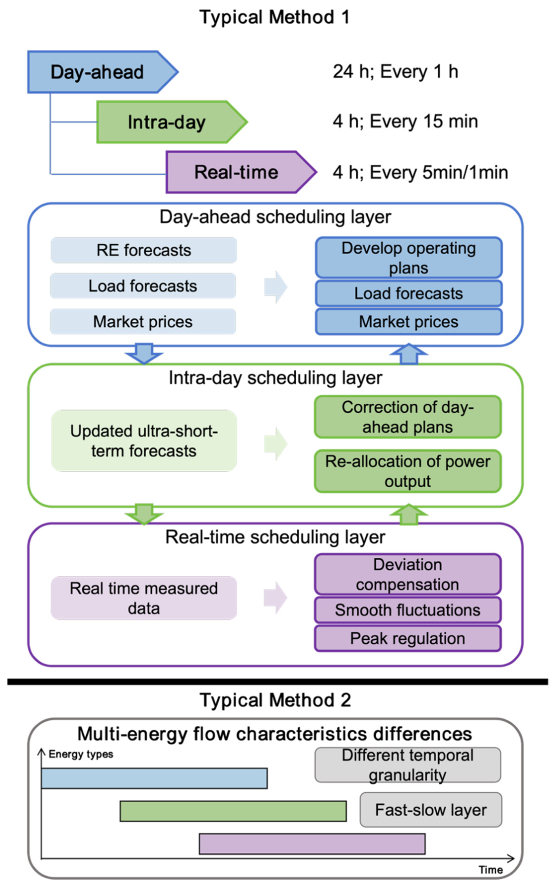 - An overview of scheduling optimization methods for IESS, summarizing recent developments in deterministic optimization, uncertainty-aware optimization, and multi-time-scale coordination strategies.