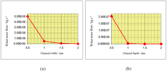 Water removal for cases varying channel width (a) and channel depth (b).