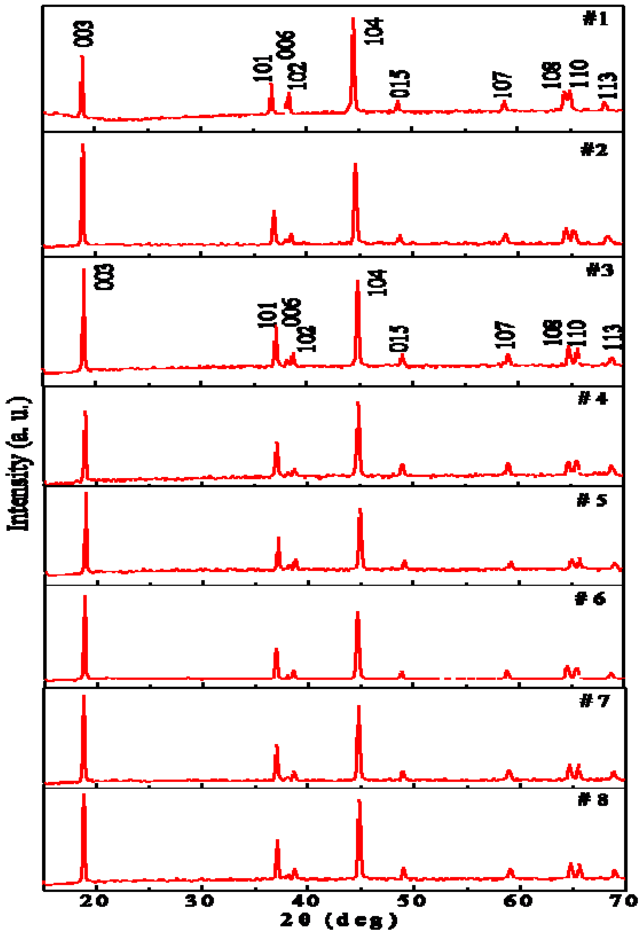 | #1 | Li1.033Mn0.067Ni0.64Co0.26O2 | R-3m | 2.883(2) | 14.222(3) | 118 | 122 | 128 | 141 |
